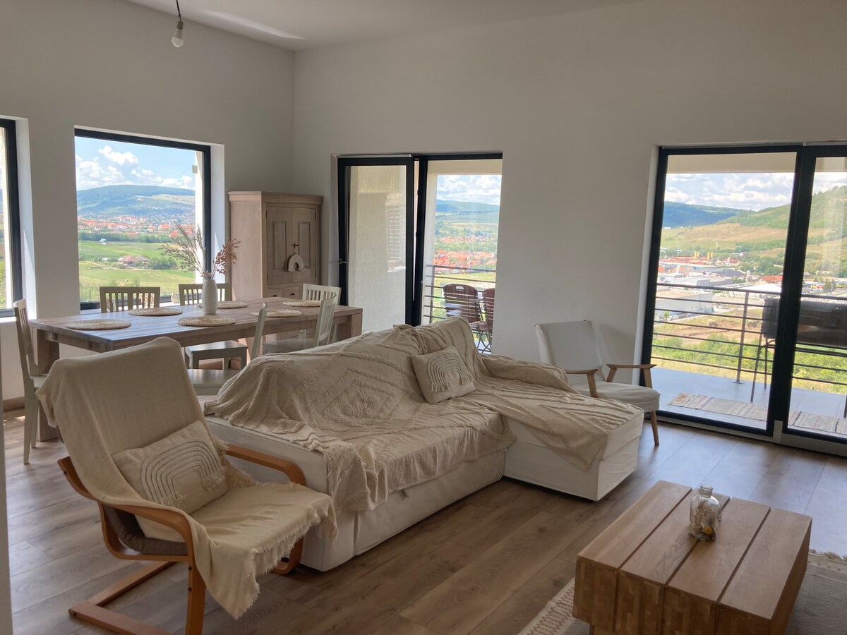 This relaxing property minutes from the city has breathtaking mountain views. Located in a new residential area overlooking Szekelyudvarhely with panoramic views all the way to Suko. Enjoy luxury and comfort with the whole family. Experience peaceful sunsets on a beautifully furnashed patio. You have the comfort of your own kitchen with everything you need, coffee and tea provided when you arrive. Wifi at no cost and crib/highchair available upon request. Outdoor fitness/park is a 3 min walk!!