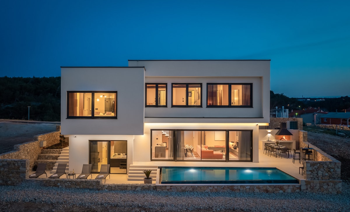 Casa AL ESTE is not just another villa in Croatia..it's your unique summer escape in one of the most beautiful bays in Petrčane Zadar..our goal was to create a place for YOU to be HAPPY from the moment you arrive..it's a dream & for sure a destination you don't want to leave..PURE JOY..200m2 highest level of excellence, 40m2 pool, private fitness & yoga area, sauna, 3 bedrooms, 1 huge comfy couchbed, 3 bathrooms, 5 parking spots & lots of other luxury details for up to 5 persons! Just BOOK it!!