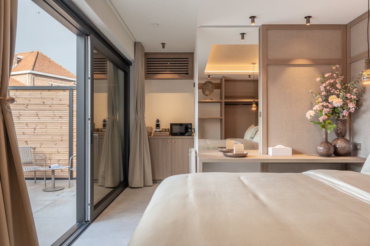 This beautiful space in the very heart of Bruges offers a unique view of the city’s iconic towers. It comes with a private bathroom, a comfortable queen-size bed, fridge, and Nespresso machine. A tranquil oasis, it invites you to fully relax, unwind, and recharge during your stay. Breakfast is not included, but a wide choice of shops, cafés, and restaurants are just around the corner. Limited parking (€15/night) is available nearby, subject to availability and first come, first served.