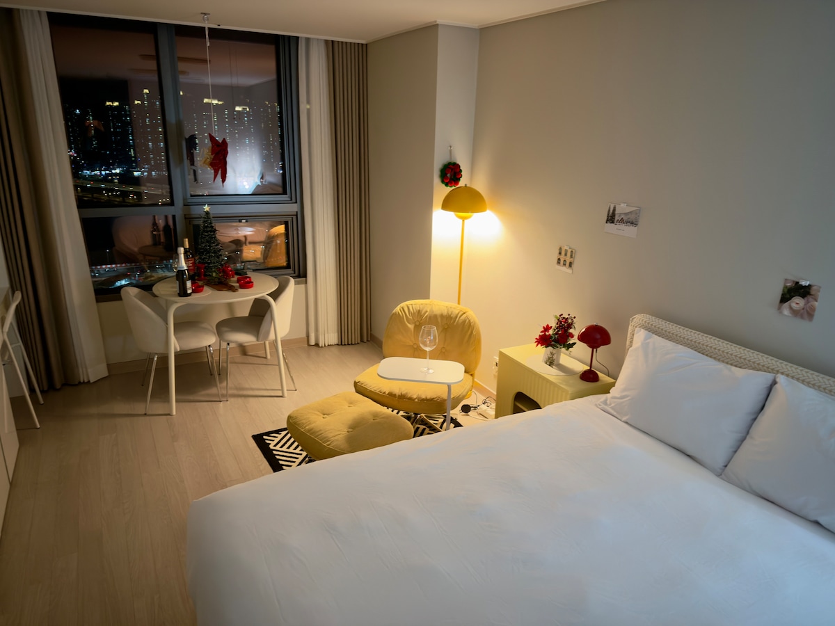 Premium Residence/Night View Restaurant/5 minutes walk from the station/Hotel Bedding/ Incheon Airport 30 minutes/Luxury Vacation/ Sea view