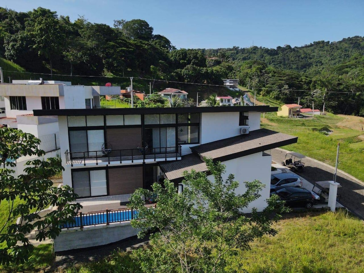 Escape to our brand-new, 4-bedroom villa nestled in the Costa Rican hills. Discover the best of both worlds, where breathtaking panoramic views envelop the house. Start your day with a sunrise coffee on the back porch and end it with captivating sunsets. This haven offers tranquility and seclusion, yet it's conveniently close to local dining and shops a few miles away. Immerse yourself in this Villa, where serenity meets accessibility, promising a rejuvenating escape in Costa Rica.