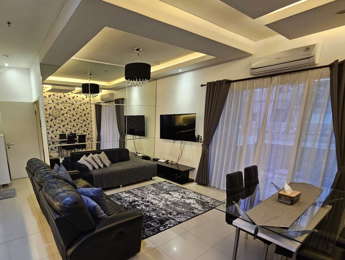 Stay at our cozy 61 sqm in central Jakarta! Perfect for families, business trips, or staycations. Enjoy direct pool access from the balcony, shared facilities (Jacuzzi, gym, tennis court, jogging track, kids' play area), comfy leather sofa, high-speed WiFi, and a spacious balcony. Need Shopping? Adjacent to Thamrin City Mall or a 5-minute walk to Grand Indonesia and Plaza Indonesia Need more space? Rent the adjacent unit: https://www.airbnb.com/rooms/23830950?viralityEntryPoint=1&s=76