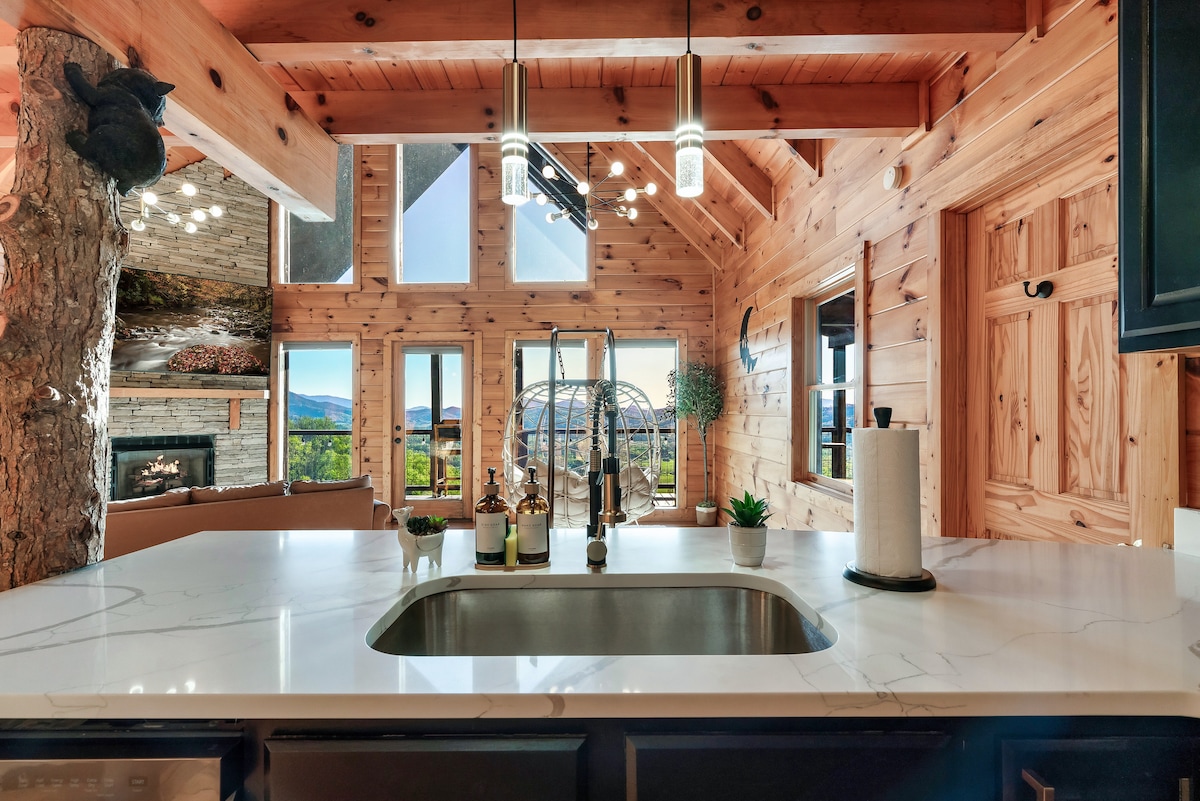 Experience unparalleled luxury at Windows to the Mountains, a modern marvel nestled in Gatlinburg with stunning views of Mt. Leconte. Chalet features a rooftop deck with a modpool, movie theater, and exquisite outdoor amenities. Enjoy a fully-equipped kitchen, cozy living room with a vapor fireplace, and a master suite with a spa-like bathroom. Complete with a coffee bar, game tables, and a sauna, Windows to the Mountains offers an exclusive retreat for discerning guests seeking a lavish escape.