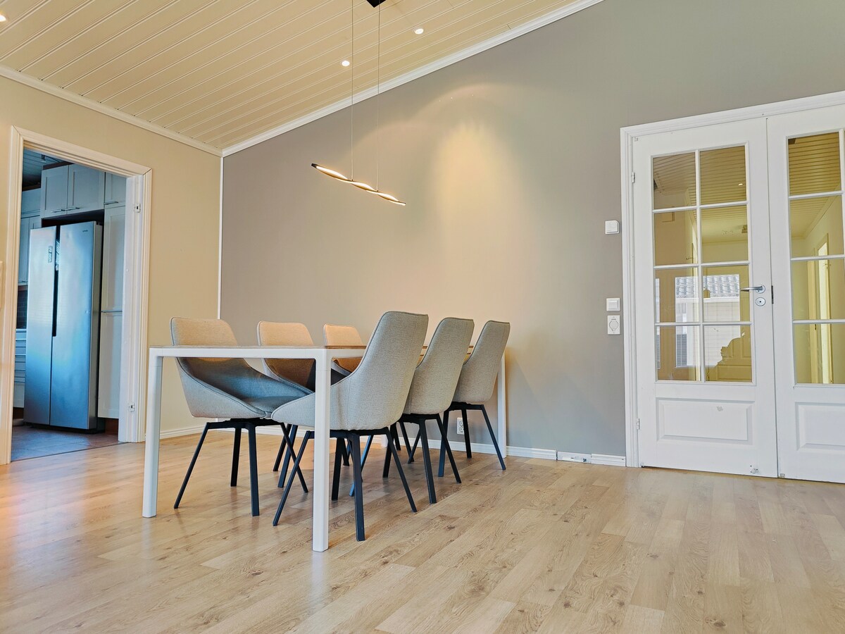 High-quality overnight stay close to nature in a renovated property for summer 2022. Rinne-Jukkola's detached house is great for a weekend trip, a longer stay or a meeting place for various groups. The 120-square-meter house has three bedrooms, a spacious living room and an open kitchen, a toilet, a laundry room and a sauna. The house is wonderfully bright and offers a spacious field landscape view in the middle of the countryside. For an additional fee, it is possible to rent a hot tub and a larger yard sauna from the yard.