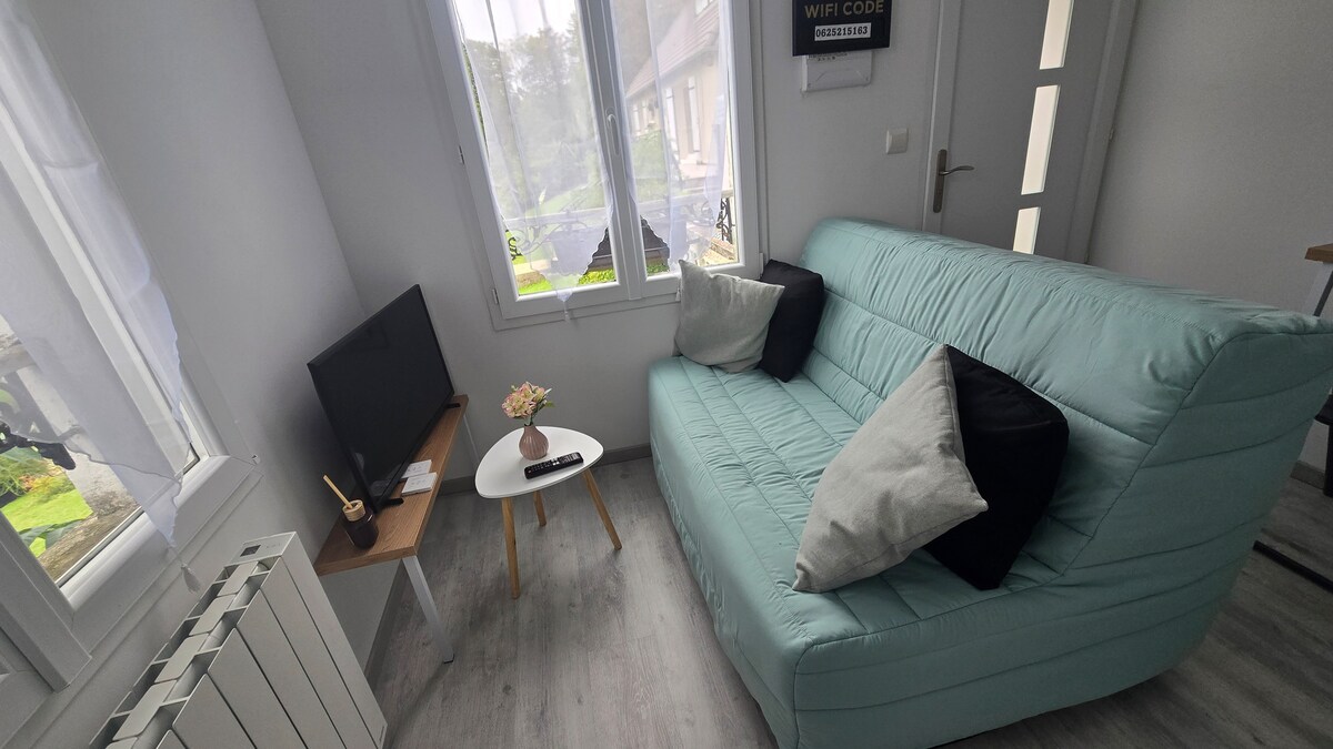 Enjoy a stylish, central, and warm 45 m2 home on the first floor, apartment.№2. Ideally located in the heart of the city and its shops (Sitis Market opposite and Carrefour Express open 7/7 from 8 a.m. to 9 p.m.), bakery, tobacco bar, restaurants and more just a stone's throw away. All on the banks of the Seine, at the gates of the Vexin, 8-minute walk to the train station for Paris Saint Lazare in 45 minutes. Laundry 30 meters away. FREE PARKING 100 meters away on Rue du Quai de l'Arquebuse along the Seine.