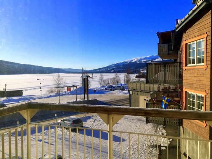 Apartment in Klövsjö, Vemdalsfjällen. The property is ski in ski out, you easily slide down to the seat lift in less than a minute. -Fully equipped kitchen - Living room with TV and panoramic windows - Two bedrooms with 2x90 cm beds each, brand new - A toilet - Bathroom with sauna - Warm storage room - Small laundry room Bed linen, towels and consumables must be brought to the accommodation. - No pets and no smoking - Age limit - 25 years (children in the company of a guardian are cordially welcome) - Cleaning upon departure is done by the tenant