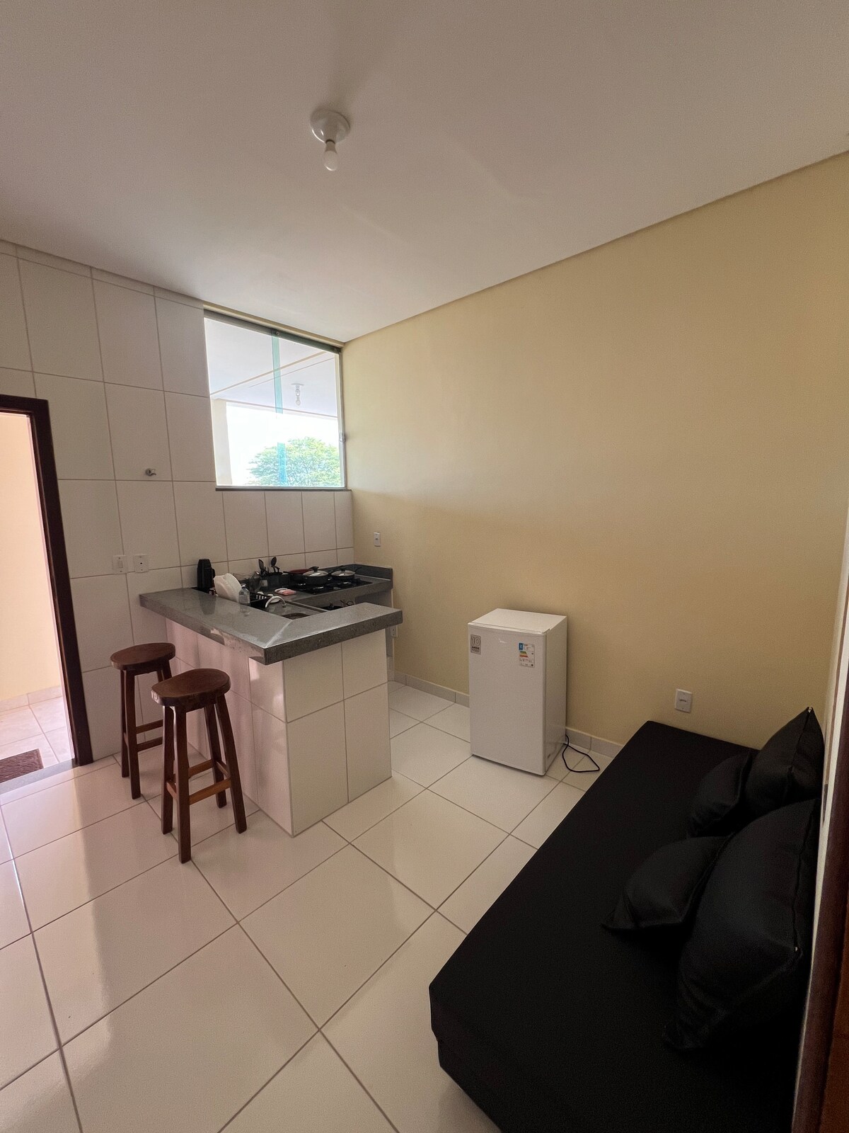 Comfortable flat in the center of Januária for up to 4 guests. It has the possibility of adding 2 more single mattresses. In this case, an additional fee of 50.00 per person per night will be charged. Complete flat in the heart of the city, ideal for those seeking practicality and comfort. It has 1 bedroom with 2 single beds, a living room with a sofa, an equipped kitchen and a bathroom. Close to everything: banks, markets, pharmacies and restaurants. We issue an Invoice/Tax Coupon for business travelers.
