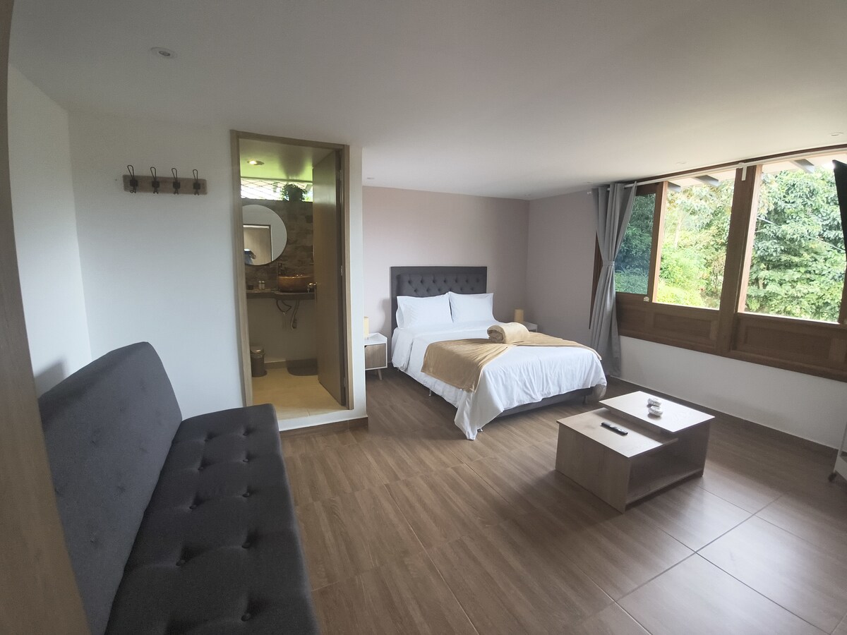 🌄✨ Relax in this cabin surrounded by mountains🌳, with amazing views of the mountain range 🏔️ and the village of Jardín 🌸. With a king size bed🛏️, a private bathroom🚿, a kitchenette 🍴 and a patio with a jacuzzi🛁, it's perfect for romantic moments💕. 🥐☕ Breakfast included, 🍽️ in the main house. 🌱 In addition, you can enjoy a personalized tour of our Margus Farm, with a special price for guests, where you will discover the secrets of coffee ☕. Have an unforgettable experience! 🌈