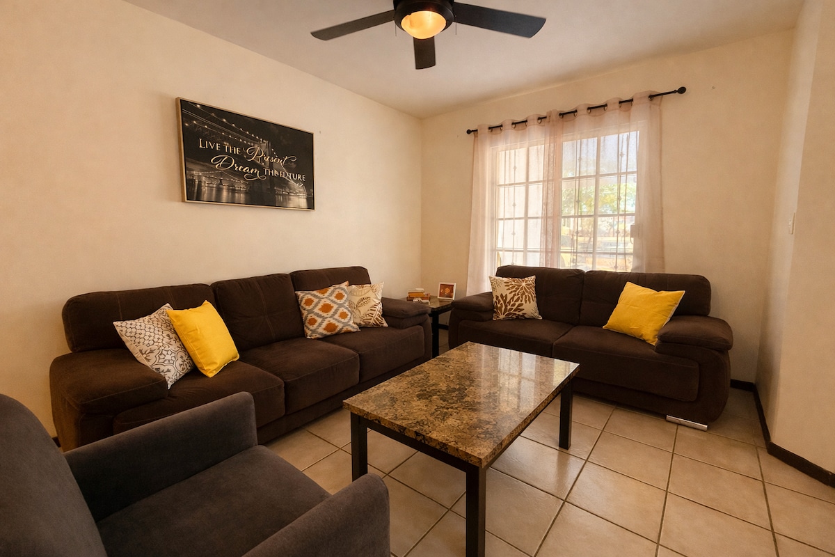 Casa Elite Con Clase is a new, private place with a guardhouse, ready to premiere on Air BNB. DARE TO LIVE THIS EXPERIENCE! It is very relaxing for the whole family, friends or colleagues, where tranquility is breathed; fully equipped and very comfortable as if you were at home; for your peace of mind and that of all our guests we deliver it totally clean and sanitized. Go to photo gallery! It includes: a living room, dining room, kitchen, 1.1/2 bathrooms, 2 bedrooms, and an office.