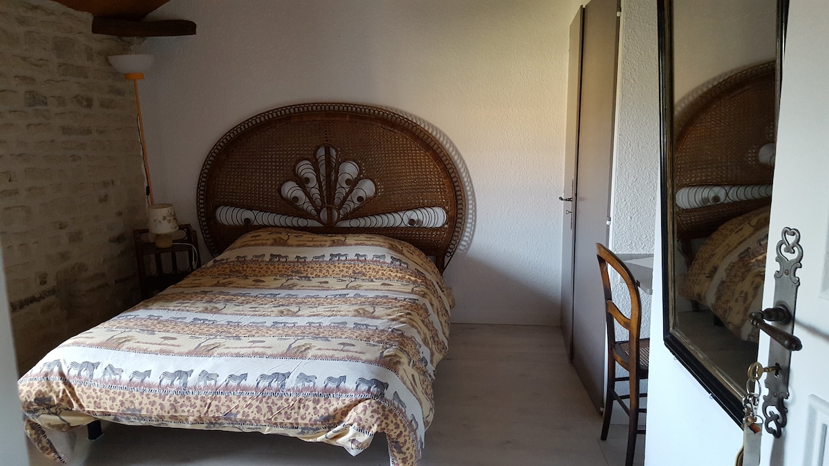 Situated at 7 km of Futuroscope, our house arranges several guest rooms which can welcome 9 people. You can also take advantage of our big wooded garden of 9000 m². This announcement concerns the Vanilla room situated on the ground floor , for 2 people (extra bed for 1 child until 12 years possible). Other rooms are available, please consult our other announcements.