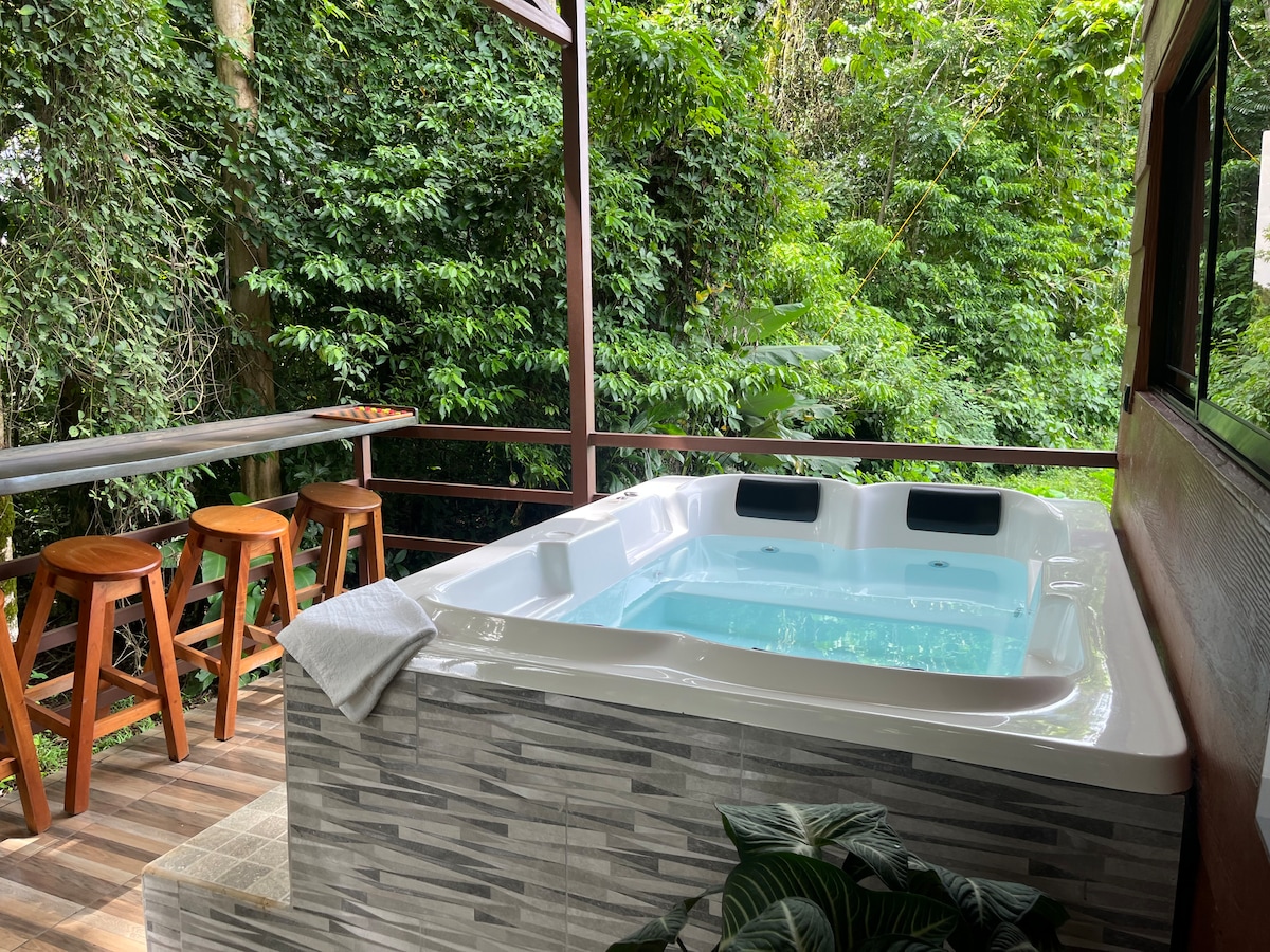 Ideal villa for resting , surrounded by nature . A magnificent space to celebrate honeymoons , anniversaries or birthdays , or just to disconnect from stress . 20 minutes from downtown Fortuna, this paradise is the perfect place to end the day in its hot tub with hot water that reaches a MAXIMUM temperature of 40 degrees Celsius, which you can enjoy on its totally private terrace overlooking the garden. • Breakfast is included in the stay.