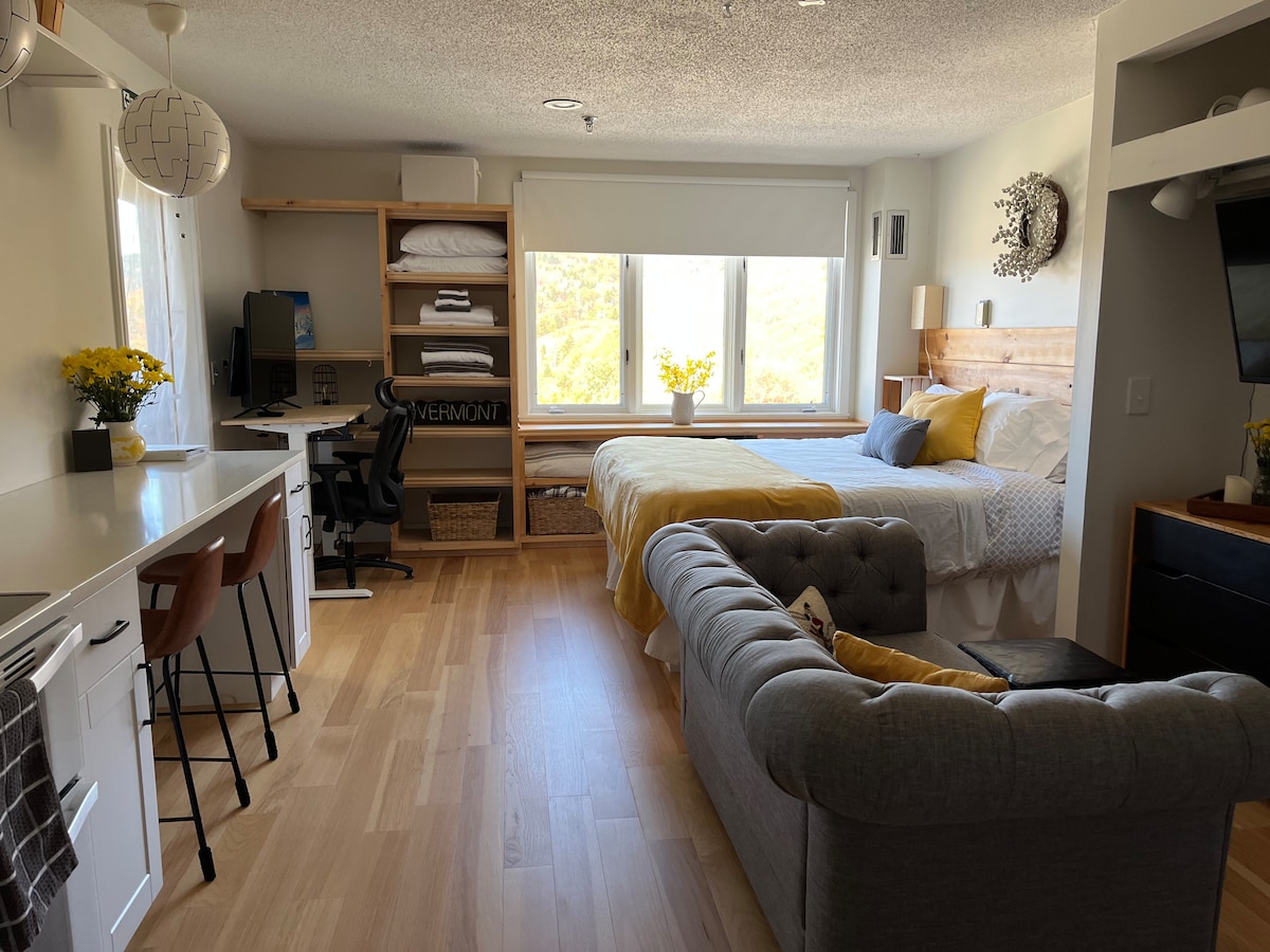 Welcome to The Loft at The High Meadows – your stylish Vermont retreat! Perfect for solo adventurers or couples who need a basecamp for exploring Vermont. You're minutes away from downtown Burlington, shopping in Williston, skiing at Stowe/Bolton, kayaking on Waterbury Reservoir, blueberry picking at Owls Head Blueberry Farm, and savoring craft brews at Stone Corral. The Loft offers a well-appointed kitchen with dishwasher, laundry, luxurious queen bed, & more. Book your Vermont getaway today!