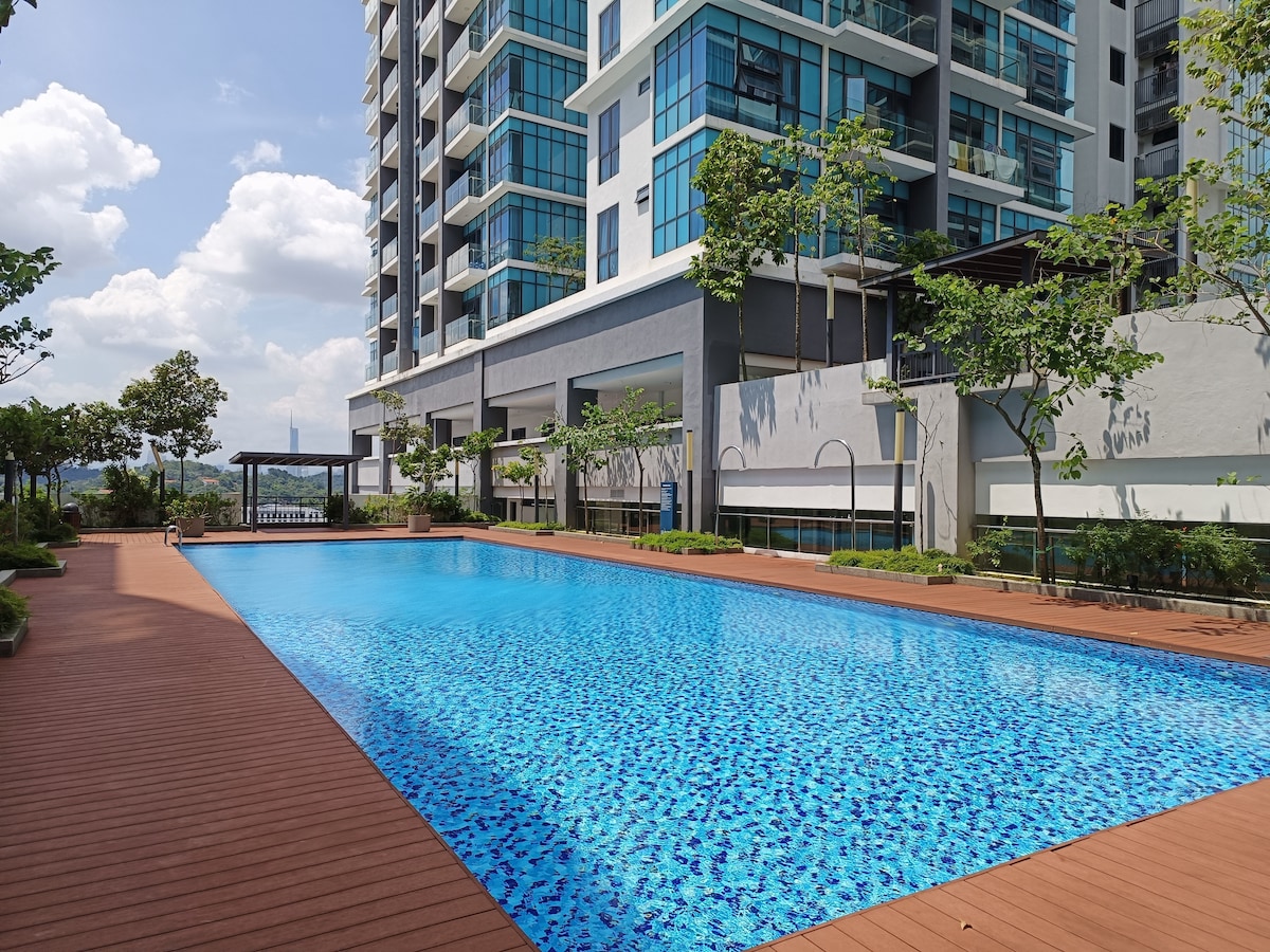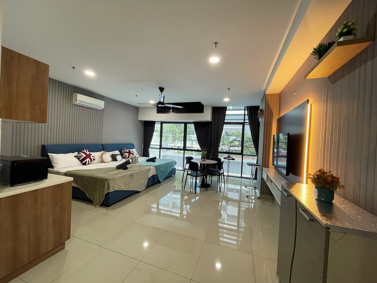 ☆Brand NEW Modern & Cozy Studio ♡♡ COMPLIMENTARY Instant Noodles Cups & Fresh Mint Candy♡♡ ☆Fully Furnished Studio ●42-inch smart TV with streaming services like Netflix ●Fully equipped kitchen with hood & hob ●2 doors fridge ●Queen size bed ●Lazy sofa ●Dining table & chairs ●Coway air purifier & water filter ☆ Practicalities ●Free 1 parking lot and high-speed Wi-Fi, adding to the convenience for guests ☆Facilities ●Swimming Pool ●Swing Chair infront unit door step