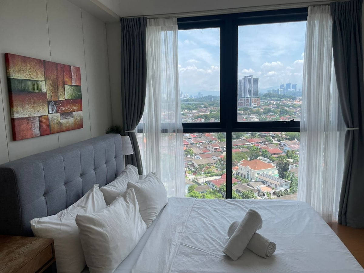 Bright studio, on level 27 with views of KL city skyline & the lake. Peaceful suburb, 7km to KL city. 20-min train ride to KLCC and 10 mins to KL Sentral. 7-min walk to train station. 100mbps unlimited data WiFi. Android TV & Netflix. Single induction hob, hood and cooking utensils in a kitchenette A well-loved unit, guests mostly are long stayers. 30 odd-year old building but my unit is modern, clean & with adequate amenities DIRECT ACCESS to mall for supermarket, etc.
