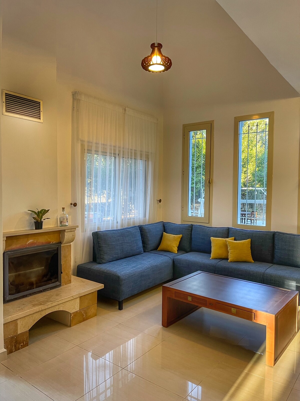 Enjoy a sunny living place with a green front yard and a fireplace. Located in the heart of Byblos overlooking garden and greeneries, in a very calm residential and safe area. The apartment is modern style, decorated and well maintained, it is a 5 min walk to Edde sands, central old town/souks, restaurants and main archeological sites. It is the perfect getaway to connect with nature and relax while still living in the city and near the beach. This place is suitable for couples and small family
