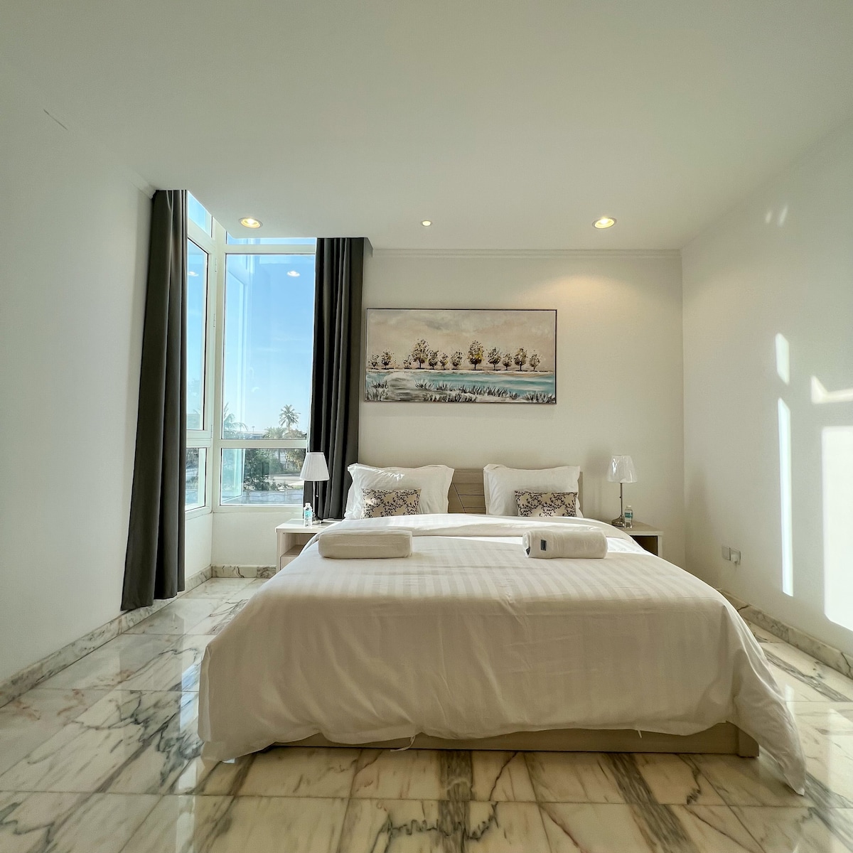 The whole group will be comfortable in this spacious and unique space. It’s near to the best malls, entertainments, corniche & sea walk. The apartment is fully furnished & serviced. The location is 20 mins away from the Airport and less than a 5 minutes walking distance from the beach & shopping malls.