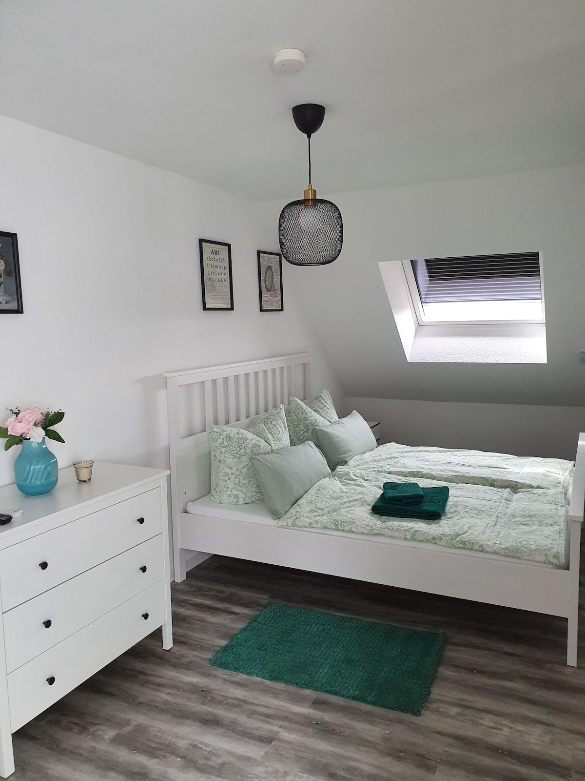 Charmante Ferienwohnung im Stadtteil Hopfengarten. Gute Verkehrsanbindung, sowohl zur Autobahn als auch zum ÖVP. Unsere Wohnung mit separatem Eingang wartet auf euch im 1. OG unseres Hauses. Sie besteht aus einem Schlafzimmer mit Doppelbett, einer kleinen Küche, einem Bad mit Badewanne und Dusche sowie einem Wohnzimmer mit einem Schlafsofa, sodass wir auch 4 Gästen eine angenehme Übernachtung bieten können. Bei Bedarf steht ein Kinder-Reisebett zur Verfügung.