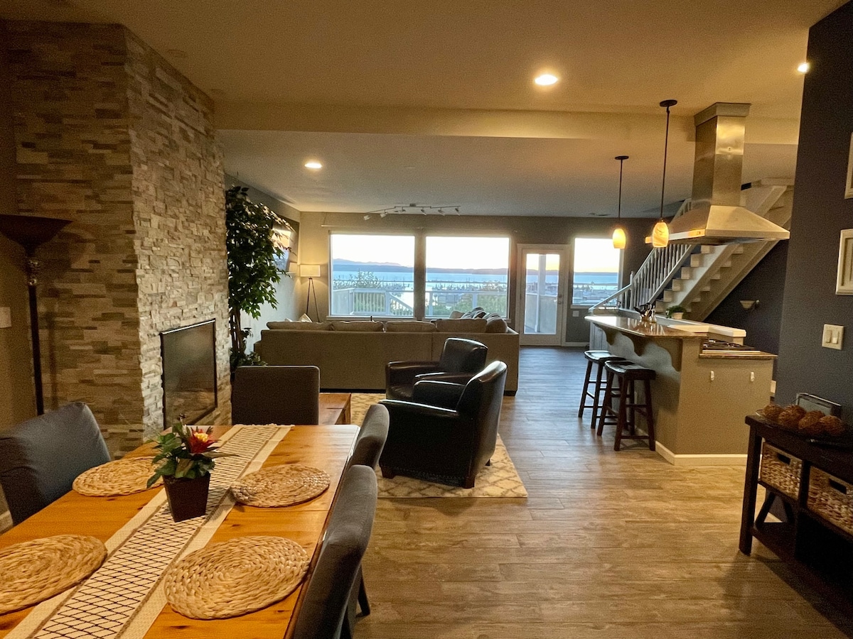 Come and enjoy our cozy waterfront home on beautiful Camano Island with views looking over Saratoga passage. You’ll experience panoramic views of the water from the living room and on our wraparound deck; perfect for whale and orcas viewing in the summer, enjoying the sunset, water features and wildlife. Our yard is completely fenced in. The deck has a hot tub, so you can relax with a soak while taking in the scenery. Let's enjoy a quiet and rejuvenating stay.
