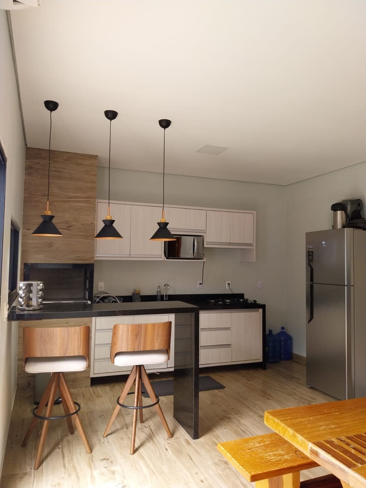 Quarto com cama nova e climatizado. Área gourmet com churrasqueira, geladeira e freezer, Smartv 55" som LG, mesa de bilhar, 2 banheiros, piscina e estacionamento.