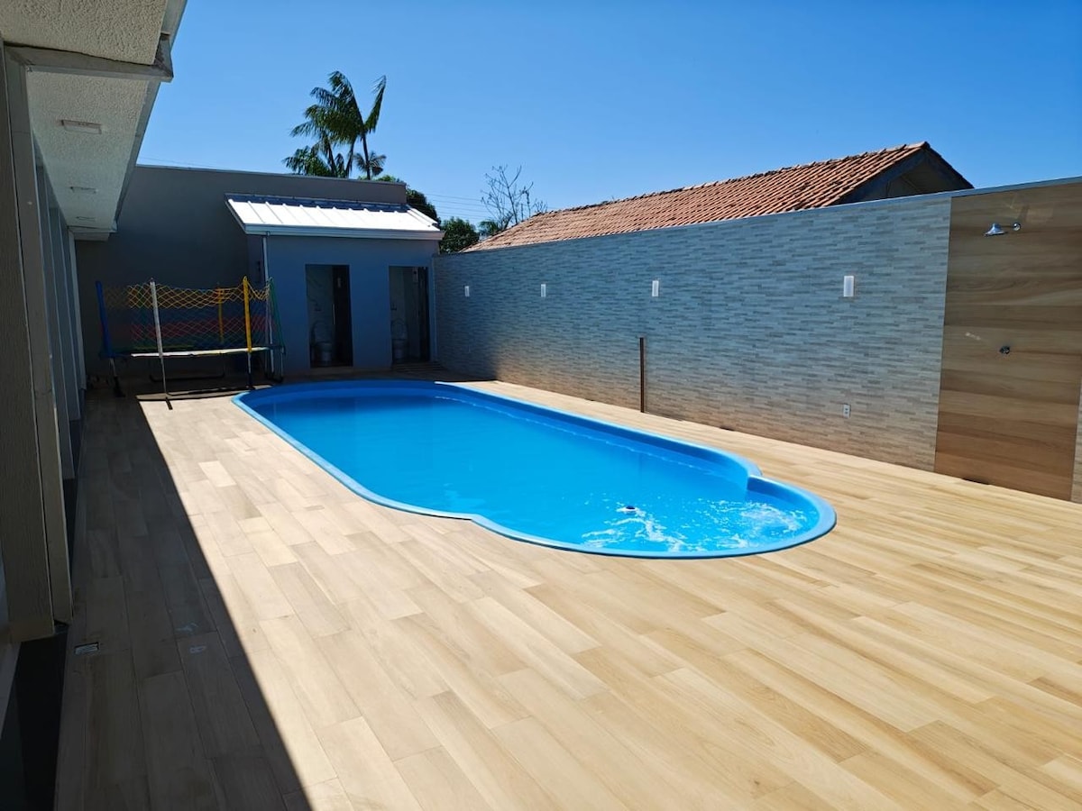 Bem-vindo à nossa oásis com piscina! Relaxe e desfrute de sua estadia nesta deslumbrante casa com piscina. amplo espaço, esta casa é perfeita para famílias ou grupos de amigos em busca de conforto e diversão. A casa dispõe de três quartos com cama de casal + 6 colchões de solteiro. ideal para grandes famílias