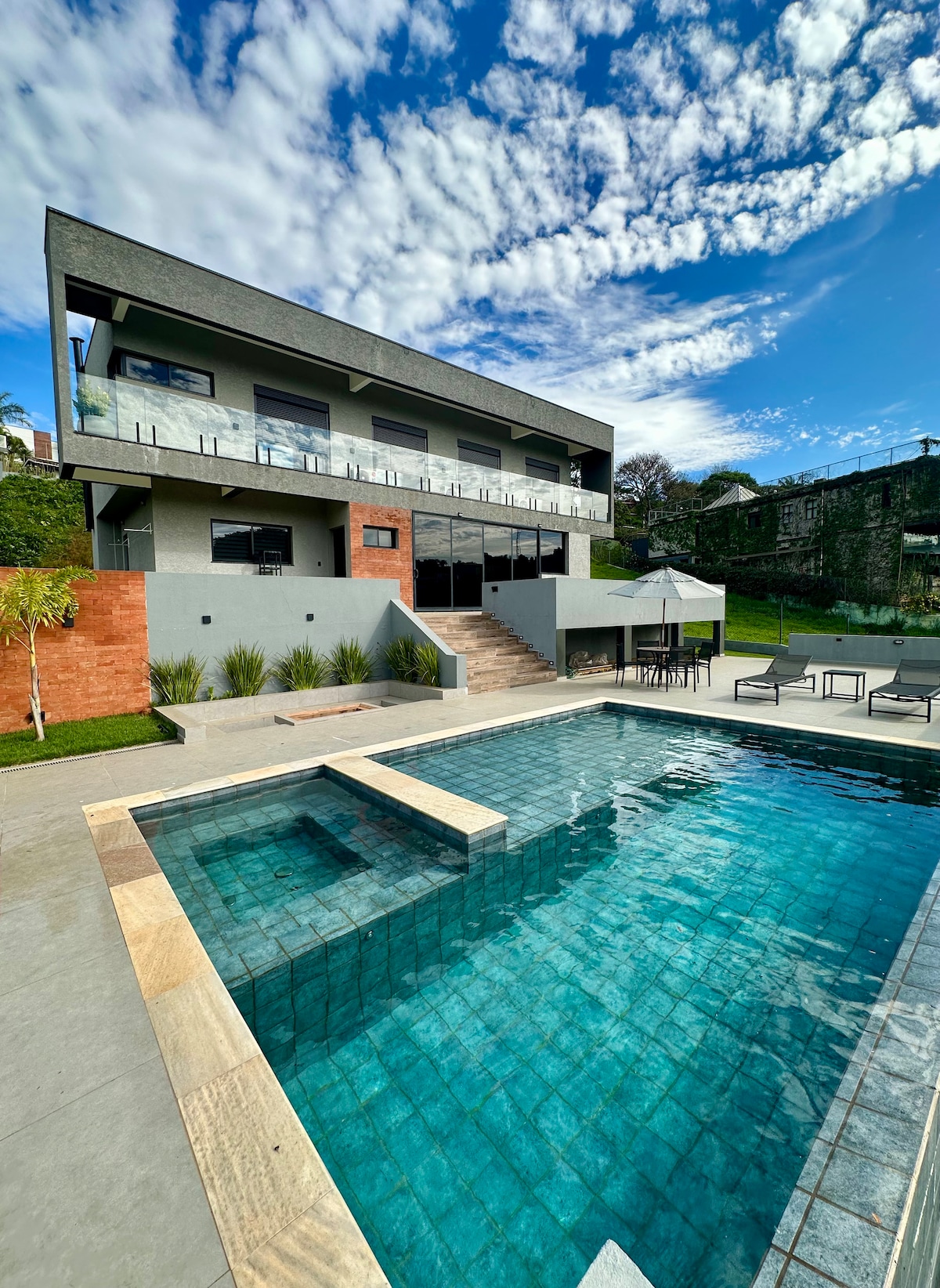 This magnificent house brings together style, space and tranquility. Recently built, it features contemporary architecture in 700 m², with six large suites and two bathrooms in the social area. The kitchen, gourmet area and rooms are integrated into a large "L" space. Heated infinity pool, which connects to a wet sauna and a wet bar with barbecue. In addition, the property is privileged with a breathtaking view of the dam, where the sunset is spectacular.