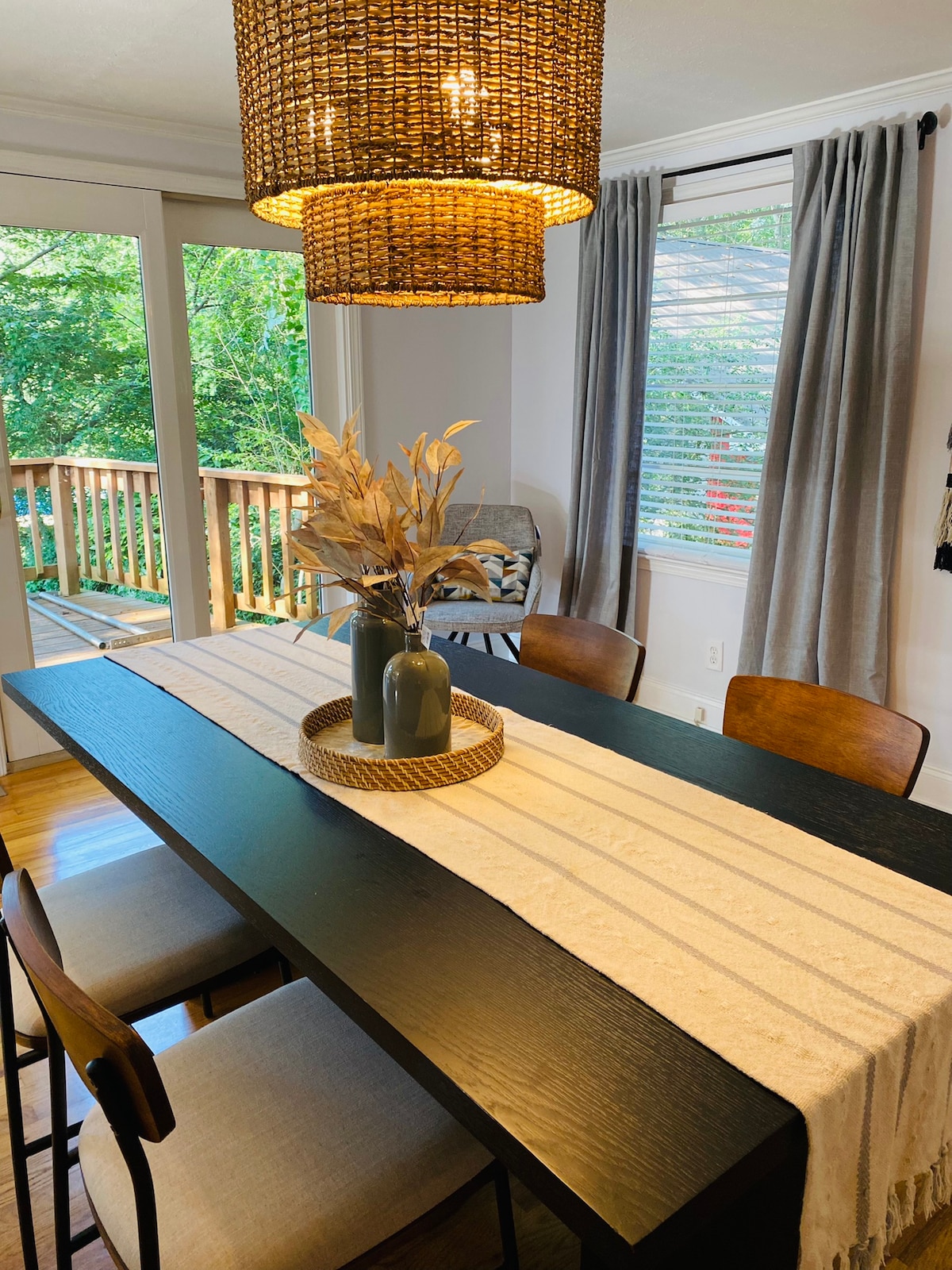 This is a private basement apartment with its own entrance, separate from the main home, which houses other guests. This private apartment is outfitted with a king bed set, comfy chair, fold out sofa bed, 2 smart TV's to view your favorite apps, full bathroom, eat in kitchen in a quiet neighborhood. Easy access to area businesses, major highways, venues, MARTA and charming downtown Norcross. There is access to the deck with BBQ grill, patio table and w/d shared by other house guests.