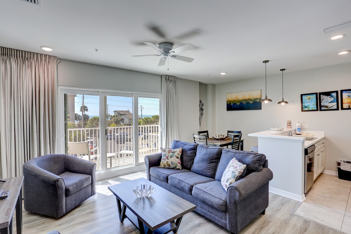 Be among the first to experience this new condo resort. 992 sq ft of beachfront luxury with full resort amenities. These upper-floor corner units have gorgeous views of the ocean, and each room has a window with beach views. With 2 bedrooms and 2 bathrooms and a pullout couch in the living room, these units can comfortably house 6 people. After arriving in your open concept living area, you will access your private balcony through retractable sliding doors that let the ocean air in.