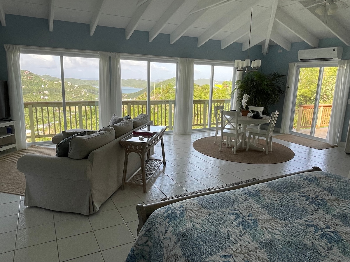 Lovely Cottage with 180 degrees of white water views. You can see and hear the crashing waves below. A/C, Private , Romantic with a gorgeous outdoor shower. Spoon into a nest of intimacy. Immerse yourself in island breezes. Take in the views of the rising sun and moon as they glisten across the crystalline waters of Hurricane Hole. Settle into the rhythm of Island life with solar energy and purified rainwater, resourceful recommendations, advice and insider tips. Welcome to simple elegance.