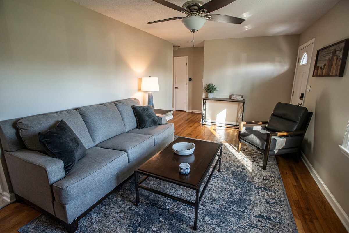 The Hadley cottage is a great place to bring the family for a fun get-a-way or perfect for your work needs. This chic & modern cottage is 3 minutes from I-35 and conveniently located to get you anywhere in the KC metro quickly. This is a quiet neighborhood with wide sidewalks within walking distance to restaurants or shopping. The cottage features a renovated interior in 2022, huge fenced backyard, and a long driveway for ample parking.