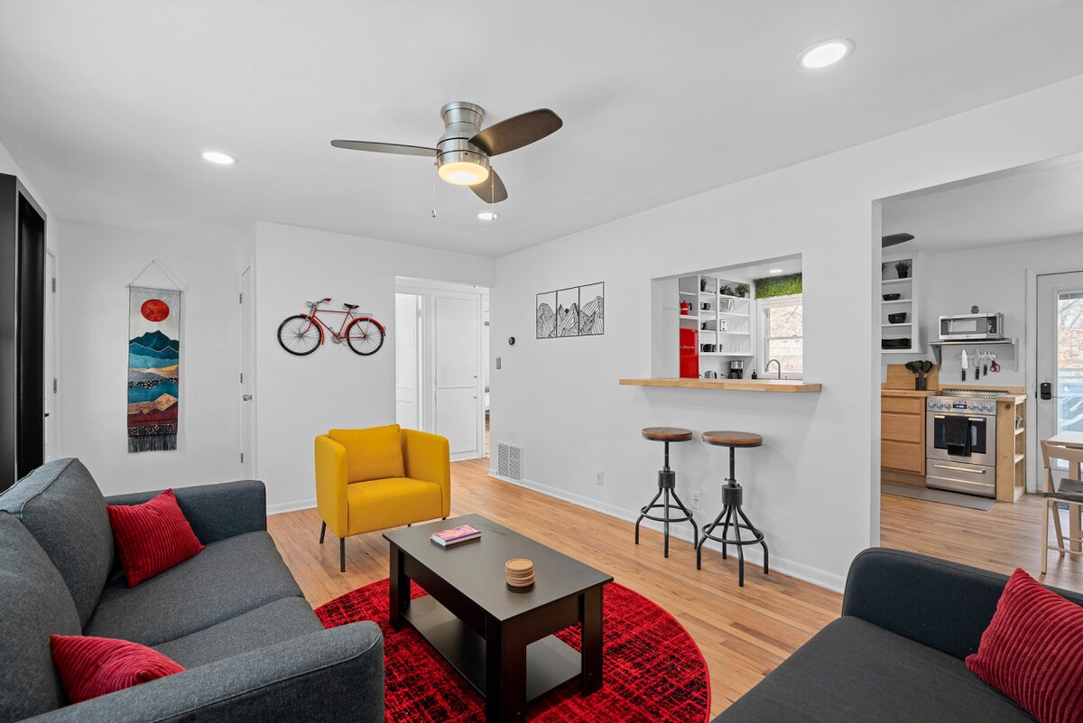 Welcome to Overland Park Retreat in the Heart of Old Town Overland Park! This charming 2-bedroom, 2-bathroom home blends modern comforts with timeless charm, offering a perfect retreat for any traveler. Enjoy the open-concept living area with stylish furnishings and natural light. The fully equipped kitchen features stainless steel appliances and granite countertops. Need to work? High-speed fiber internet is available throughout the home. Relax and stream your favorite shows on the massive TV!