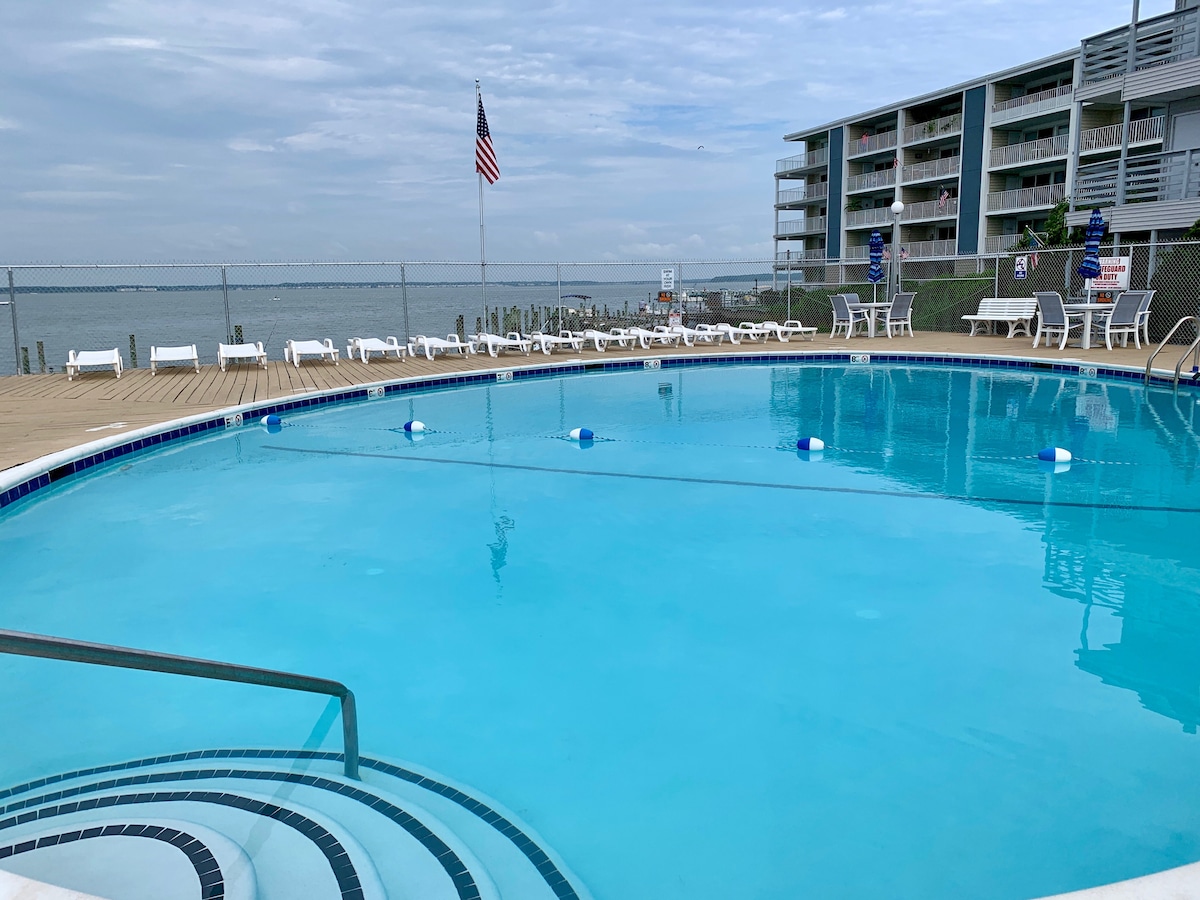 Newly renovated condo!! -Water view. Watch the boat traffic. -Oversized balcony with comfortable seating. -Comfy LoveSac couch. -Walk to boardwalk or beach - 15 minutes. -Walk to Jolly Roger amusement park. -Fish off community dock down below unit. -Close to dining and shopping. -Kitchenette for cooking meals. -Fast Wifi and Streaming TVs. -Fully Stocked Home. Clean linens, towels, toilet paper, paper towels & more!