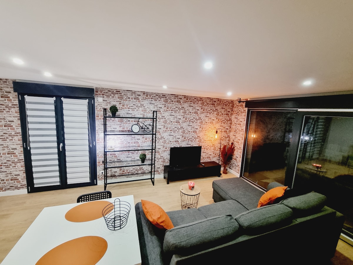 Gabrielle and Benjamin welcome you in the old barn of their house which they have carefully furnished to transform it into a bright studio of 27 m2. The decor is resolutely contemporary and colorful for the living room and neo-retro for the shower room. The kitchen/dining area has the essentials to warm up or cook single dishes. Located in the hamlet of Ballon overlooking the city, it offers you calm and comfort for your stays of 2 nights minimum.