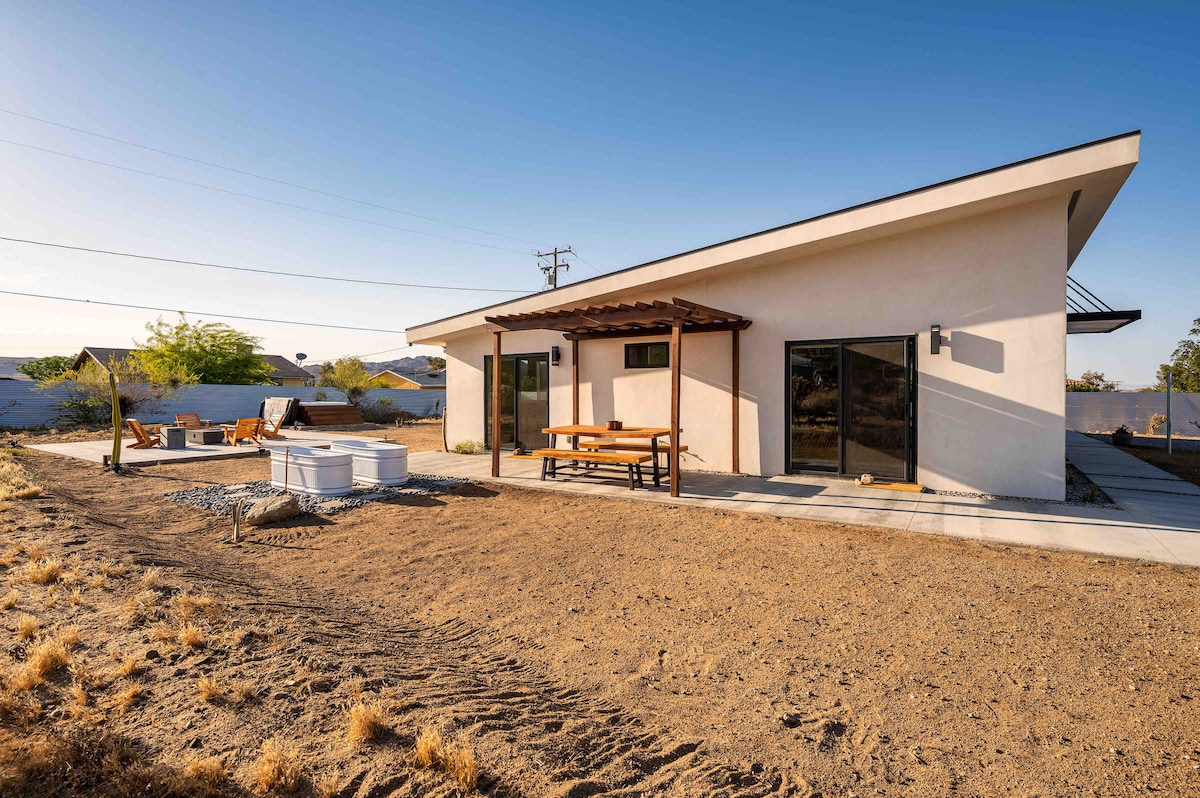 Joshua Tree Living at Its Best Stay in our beautifully remodeled downtown Joshua Tree home, just minutes from the National Park. A 5-minute walk takes you to the area’s best bars, restaurants, and shopping. After a day of exploring, unwind under the stars in our refreshing cowboy pool. Start your mornings with a coffee or espresso on the patio before heading out for new adventures. Perfectly located and thoughtfully designed, this is your ideal High Desert retreat. Book your stay today!