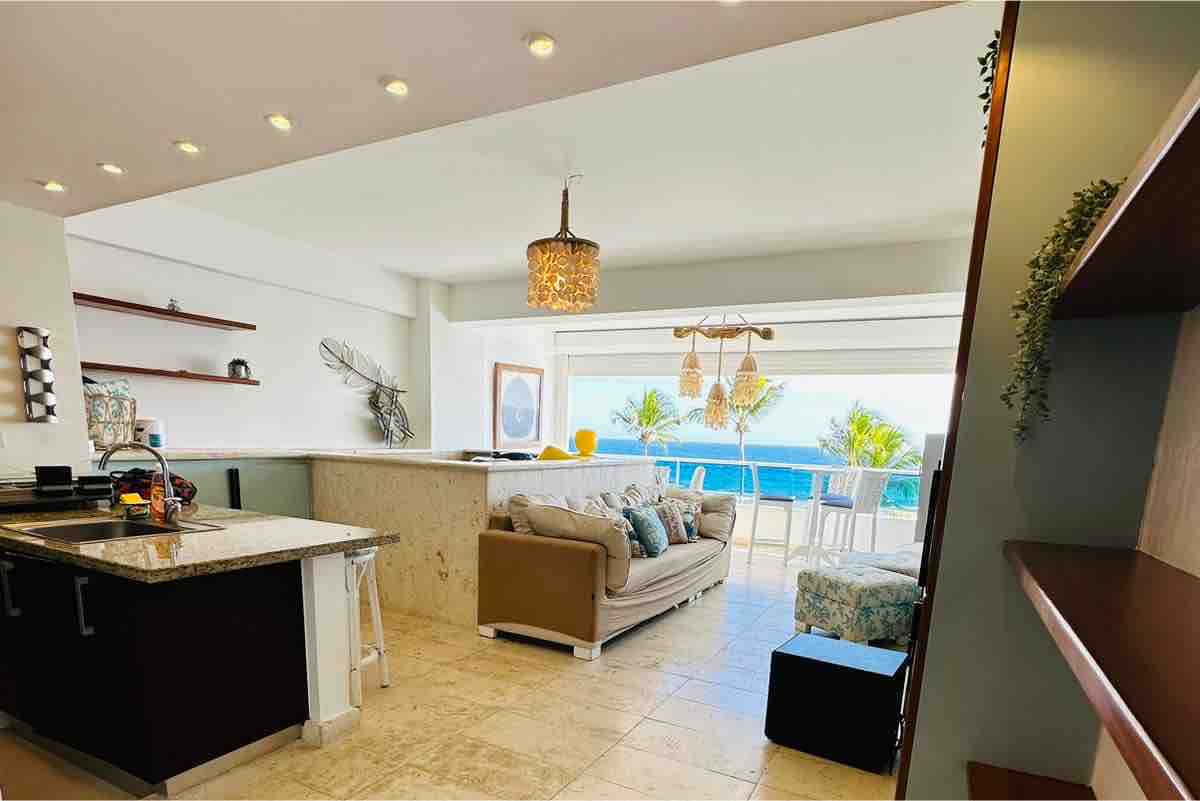 Relax in this luxury apartment nautical themed, recently and fully renovated with 300 Mb Wi-Fi, first line to a private beach and a stunning sea view. Enjoy the sunset on the terrace, overlooking the paradisaical private beach and the warm Caribbean sea; or take pleasure with the condominium services as swimming pool, Jacuzzi gym, restaurant, private security, reception... **The apartment is disinfected before and after each reservation with suitable products, and we also make available to the client hydro-alcoholic gel and a disinfecting spray. A pocos metros del condominio tienes una gran variedad de restaurantes, pubs y un minimarket con servicio a domicilio. En la zona también hay peluquerías, un banco, farmacias, un centro médico y, a solo 40 minutos en automóvil, Santo Domingo.