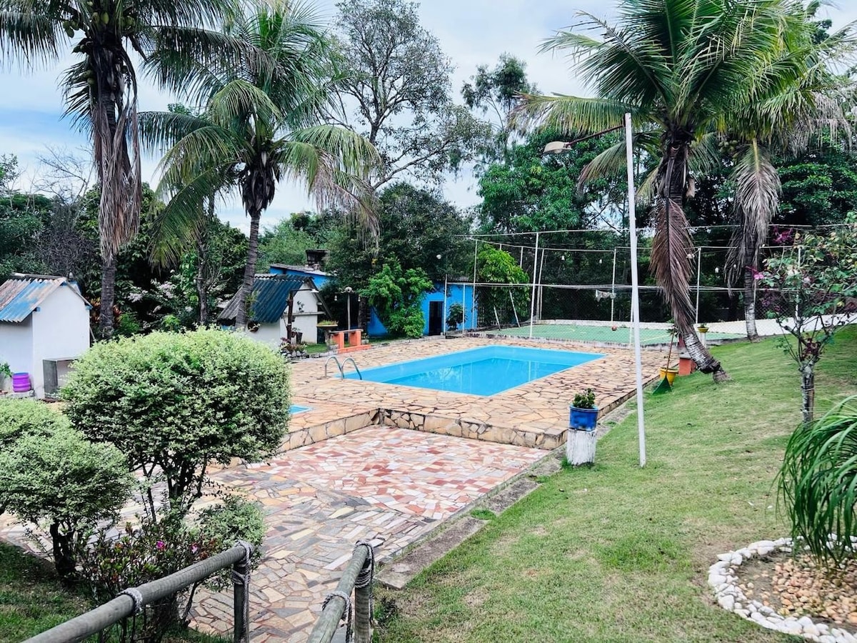 Rent a place to rest, or small events, daily rates or packages for weekends and holidays (check price). Furnished space with a large balcony with a barbecue grill, kitchen, two spacious bedrooms with a double bed in each (one with a suite), with the possibility of placing mattresses, a social bathroom, and a swimming pool. Kitchen equipped with all appliances and utensils, has a 43-inch TV. It has 8 complete sets of plastic tables and chairs. 50 minutes from Bh.