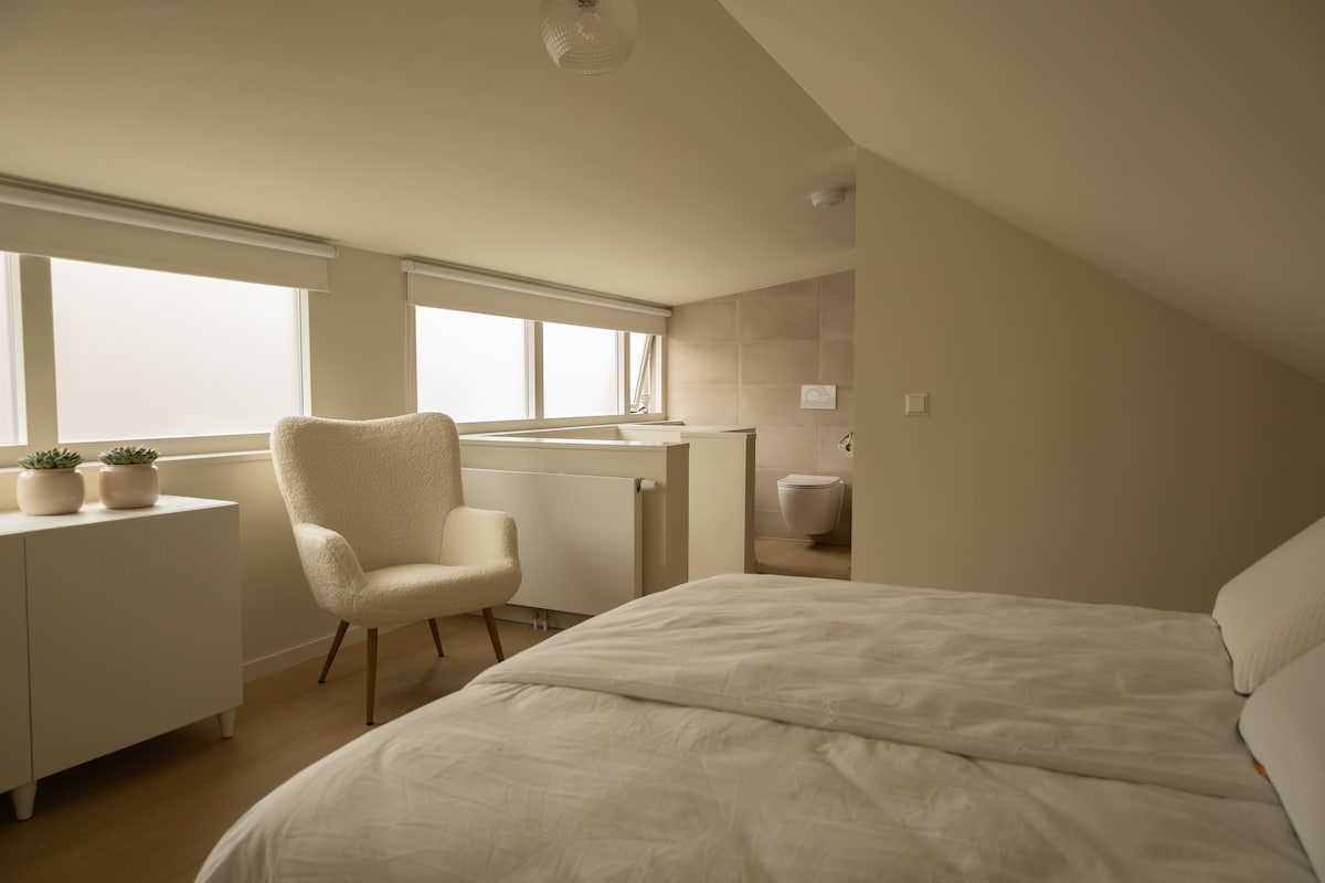 Suite-Suite is een vrijstaand, trendy en luxe privé gastenverblijf met gratis parkeergelegenheid op eigen terrein, besloten terras met overdekte patio, gelegen op slechts 5 minuten loopafstand van strand, duinen en centrum. Suite-Suite is dé ultieme plek om heerlijk tot rust te komen. Vloerverwarming en airconditioning zorgen ervoor dat het in elk jaargetijde aangenaam verblijven is. De fraaie cement gestuukte vloer, bank èn het Suite-Suite droombed maken dit verblijf tot een unieke beleving ♡