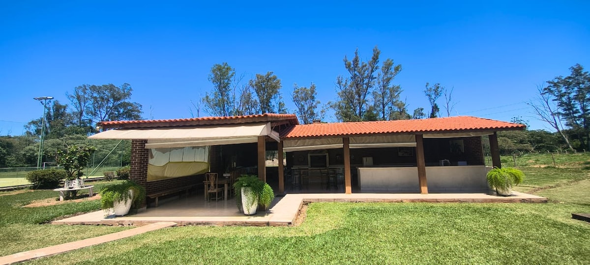 Rent this charming farmhouse in a super quiet neighborhood and experience special moments surrounded by nature and leisure: • Breathtaking view • Large pool to cool off • Full BBQ • Cozy lake • Sand court for sports • Children's playground • 3 comfortable suites Privileged location, perfect for rest. The ideal place to gather family and friends on weekends and holidays. Book now
