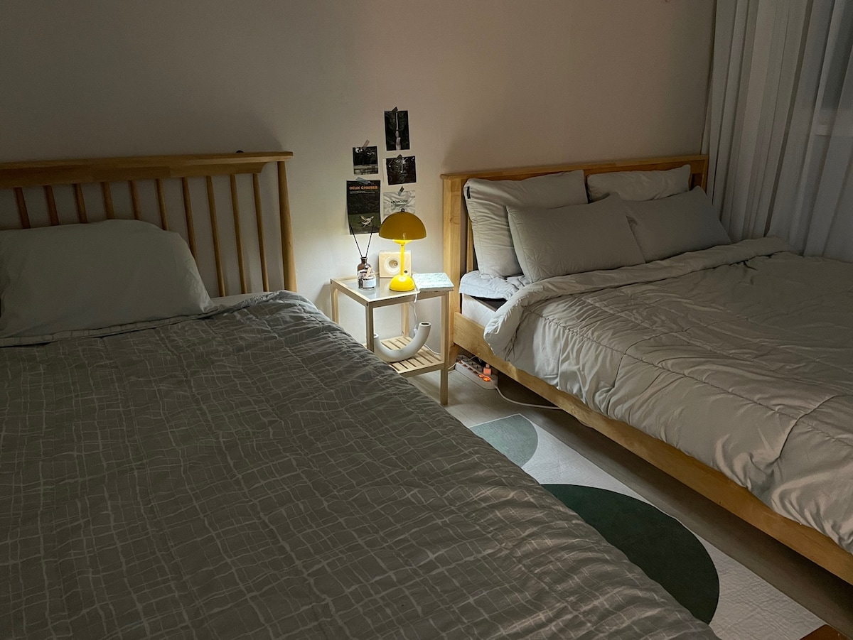 Stay Ondam is a carefully prepared space to make you feel at home even when you're traveling. Every part of the space is filled with details that consider both practicality and relaxation so that guests can stay without any inconvenience. We hope that this will be a place where precious moments of travel naturally accumulate. The 23 pyeong/76 m² accommodation has 3 bedrooms, 4 queen size beds, 1 topper, and a separate kitchen from the living room, so up to 10 people can use it comfortably. All bedding is regularly managed by a professional laundry company and is always in top condition after a thorough cleaning process before the guest checks in. Located in the center of the city, the house is very close to the station, making it easy to get to the airport and major landmarks. Large grocery stores, shopping malls, restaurants, cafes, and other amenities are nearby, making it suitable for longer stays as well. In addition, you can enjoy a colorful experience both day and night, from the traditional market where you can feel the local atmosphere and the local night market that is more lively at night.