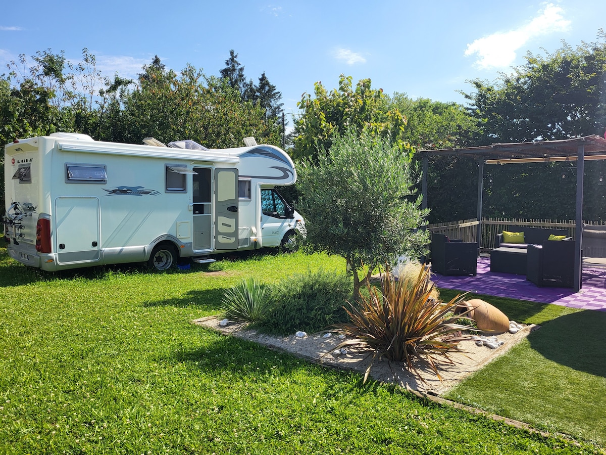 Motorhome parked in the owner's garden or at the Maillys equestrian center For lovers of the countryside, nature, calm 800 m from the equestrian center 100 m from the banks of the Saône and Tille, ideal for fishermen 1 km from the center with bakery, brewery, city stadium Close to beautiful tourist towns, 10 km Auxonne, 15 km Dole, 40 km Dijon, 50 km Besançon, 10 km A36 and A39, 5 km from the Voie Bleue by bike, 15 km Tavaux airport. Bed linen, bathroom towels, tea towels provided trampoline, pool, swing