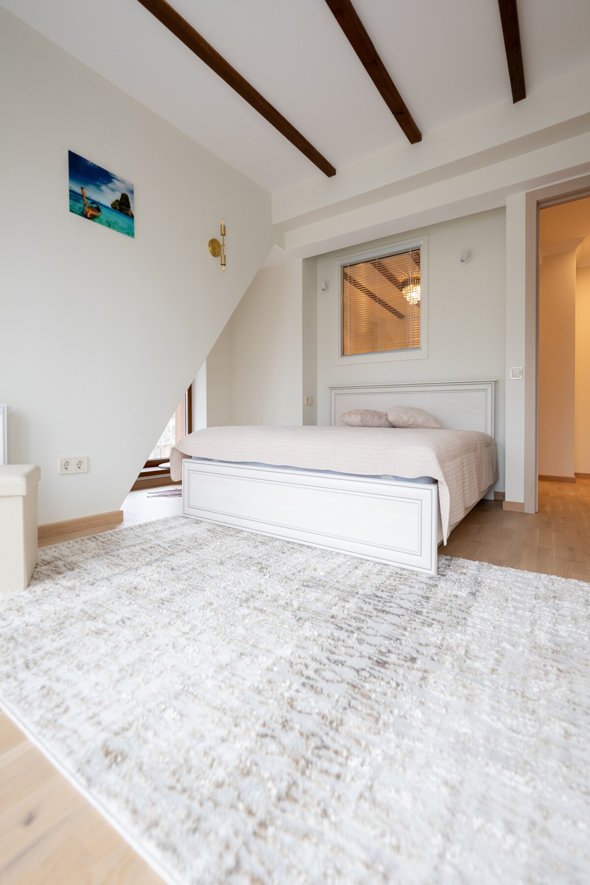 Located in a quiet side street with wonderful view of the historic part of the city. There are cafes, popular restaurants and food stores nearby. The main tourists street - Jomas Street - is in 10-15 minutes walking distance , but if you enjoy quieter and healthier holiday, you have at your disposal beautiful pine forest and endless beach line nearby. Free and fast wi-fi, TV, free public parking. Close to main roads and public transportation to/from Riga and city center.