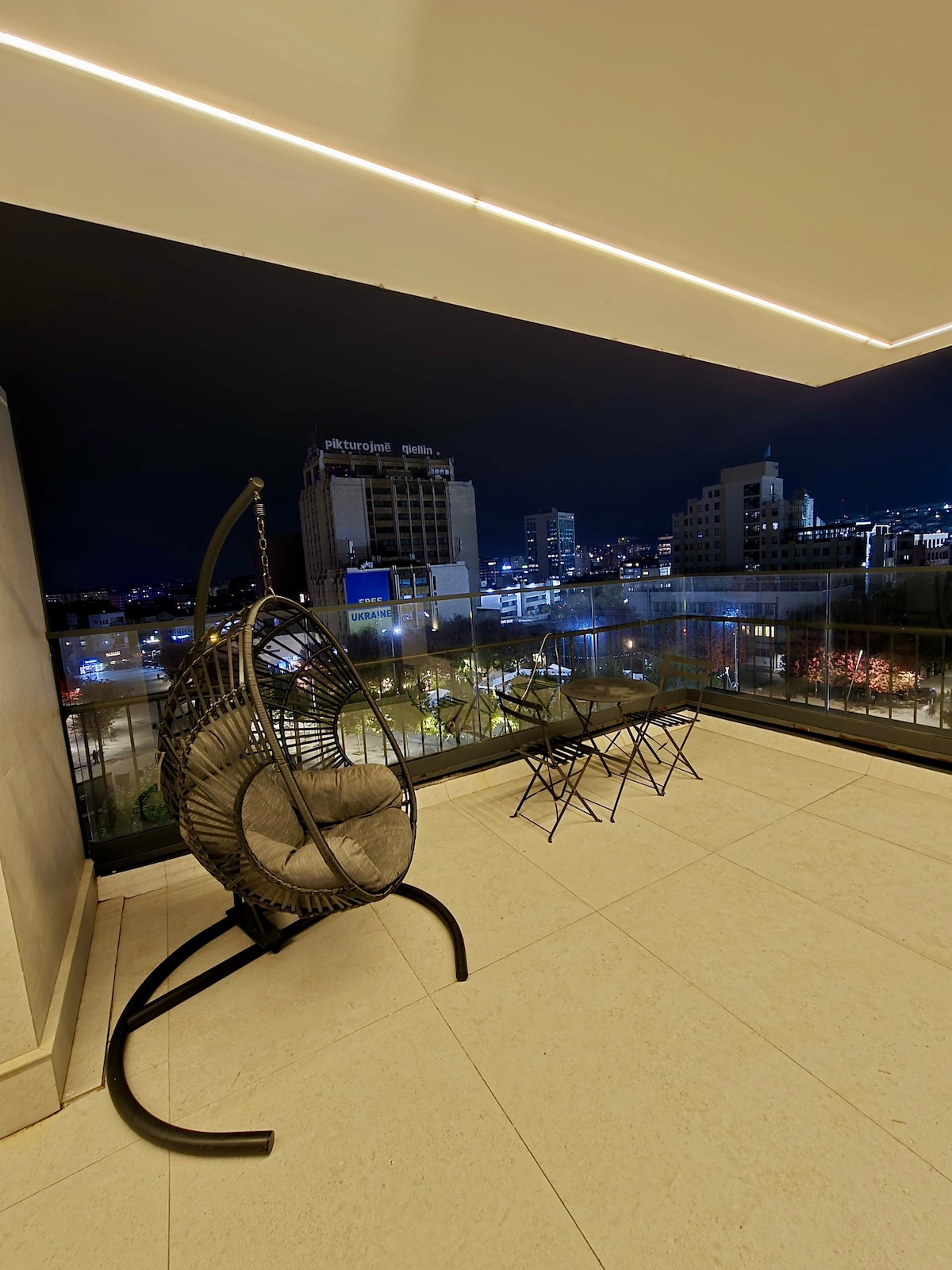 This bright and rooftop apartment is located walking distance from the city centre. The apartment is spacious, is beautifully decorated and has a superb view of Prishtina from the balcony. It has all necessary amenities, including a dishwasher, washing machine, smart TV and very reliable Wi-fi It can comfortably host up to 3 people royal mall 1 minute walk Street B is a 3 minute walk, while the centre (Grand hotel) is a 10 minute walk!and relax in this calm, stylish space.