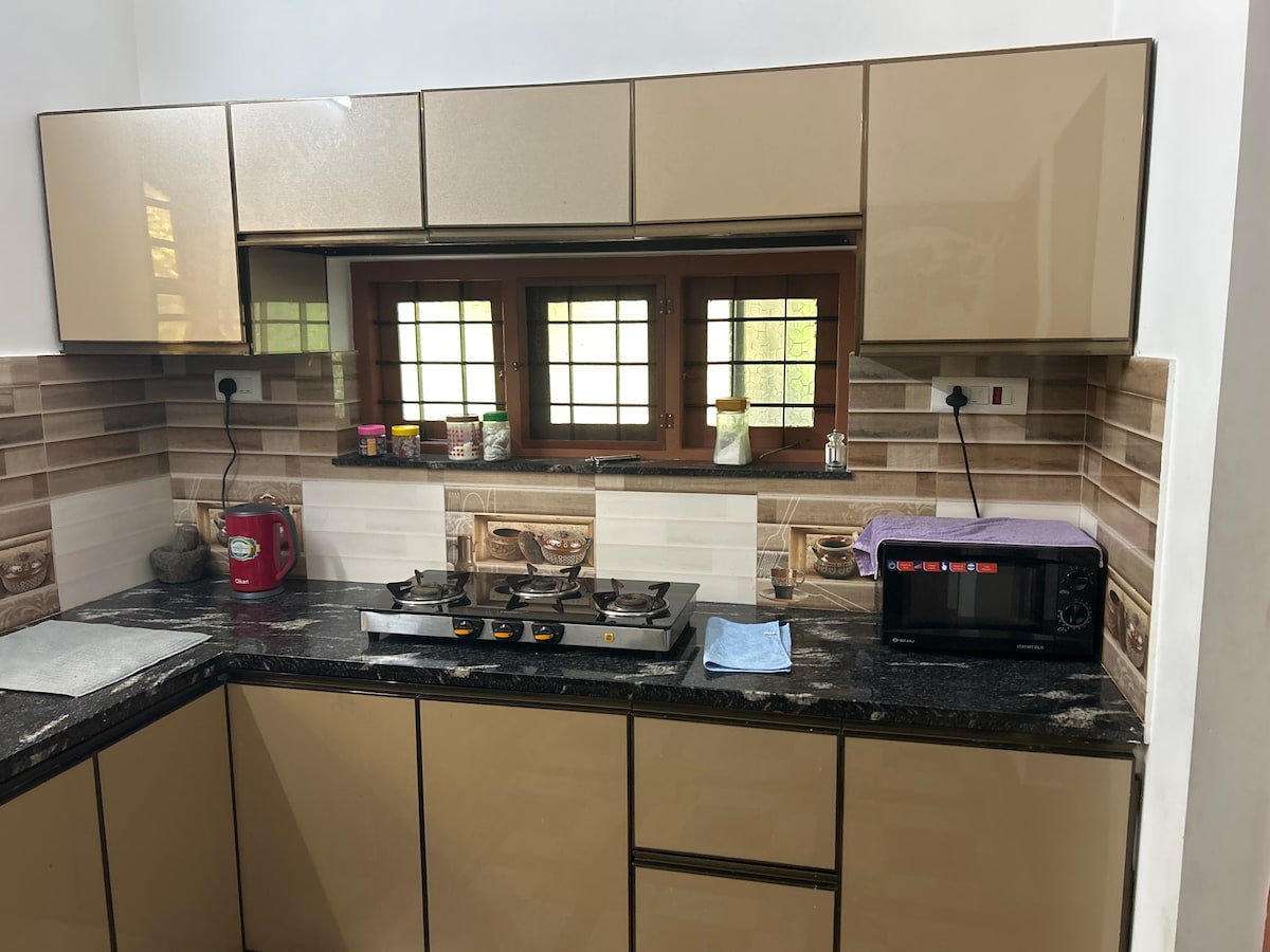 🌿 This elegant 2BHK fully furnished villa is one among the two villas in a gated 40 cents compound. 🏡 Convinentely located near Highway connecting Cochin International Airport and Ernakulam. A short walk to Metro Station, offering quick access to the city's top attractions. 🛏️ Highlights: Private gated compound with ample parking space. Ideal for families seeking safety, comfort, and convenience. Note: We welcome family groups only. For other guests, please message us before booking.