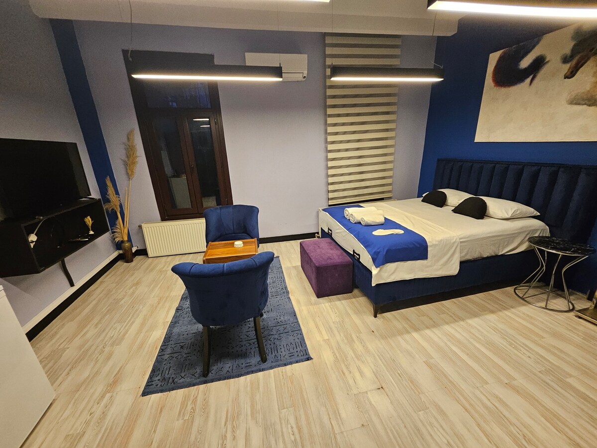This spacious and airy 1+1 suite comfortably accommodates up to 4 guests, making it ideal for families, couples, or travelers seeking extra space. Located in a brand-new building, the suite offers a modern, stylish, and comfortable living area. The room is suitable for kitchen use, and kitchenware is provided upon request at check-in. Perfect for guests and travelers looking for a comfortable, spacious, and well-designed stay in a new building.