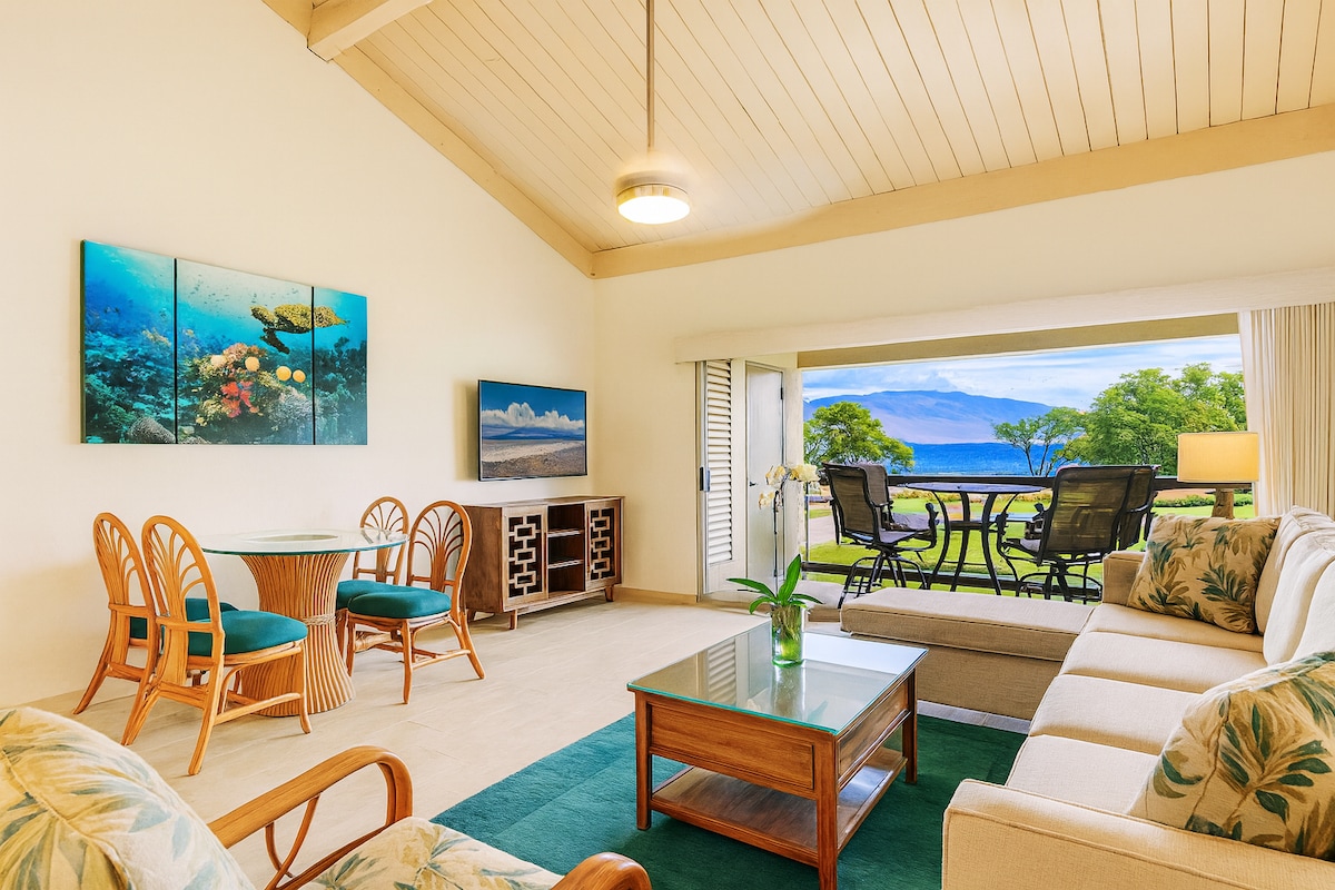 Halerentals MAK A5 is a completely renovated beachfront condo, with high end materials throughout. RH furniture, cotton sheets, marble shower, gourmet kitchen, & a/c in every room-- just steps away from 3 miles of undeveloped beach! Bright spacious ground floor 1bed/1bath condo with fully stocked kitchen, and views of the beach, bay, & Haleakala volcano. King RH sofa bed in living room for up to 4 guests. Ideal for swimming, SUP, snorkeling, and surfing-- amazing value for families and couples.