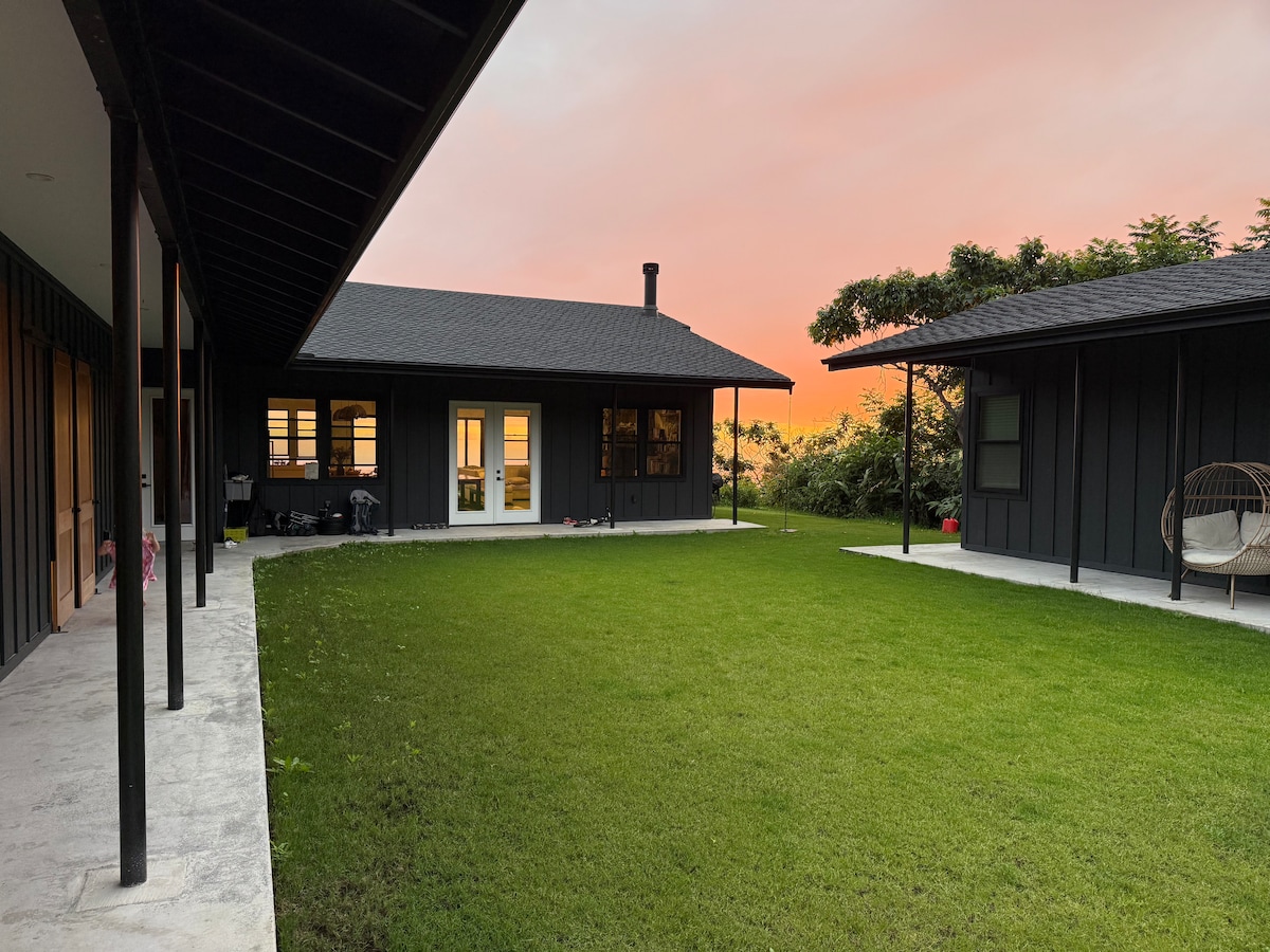 Experience breathtaking Hawaiian sunsets at our serene, brand-new house! Sleeps 14 with 3.5 baths, a spacious main house & private guest house. Enjoy open living spaces, lush outdoor areas, cooler temperatures at higher elevation, a gourmet kitchen, WiFi, BBQ, tennis, basketball & pickleball courts, and plenty of room to gather or relax. Perfect for families, group getaways—quiet, private, and designed for unforgettable memories under the Hawaiian sky. Only 15 minutes from downtown and airport.