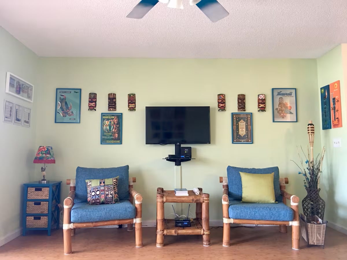 Welcome to your tropical getaway in Kailua-Kona! This spacious 1-bedroom, 1-bath condo is in a charming complex just off Aliʻi Drive, with a bright, colorful interior. Sleeps up to 4 with a king bed and queen sofa bed. Enjoy a fully equipped kitchen, AC, and a peaceful pool with sun deck. Walk across the street for ocean sunsets, beaches, and markets—an ideal home base on the Big Island.