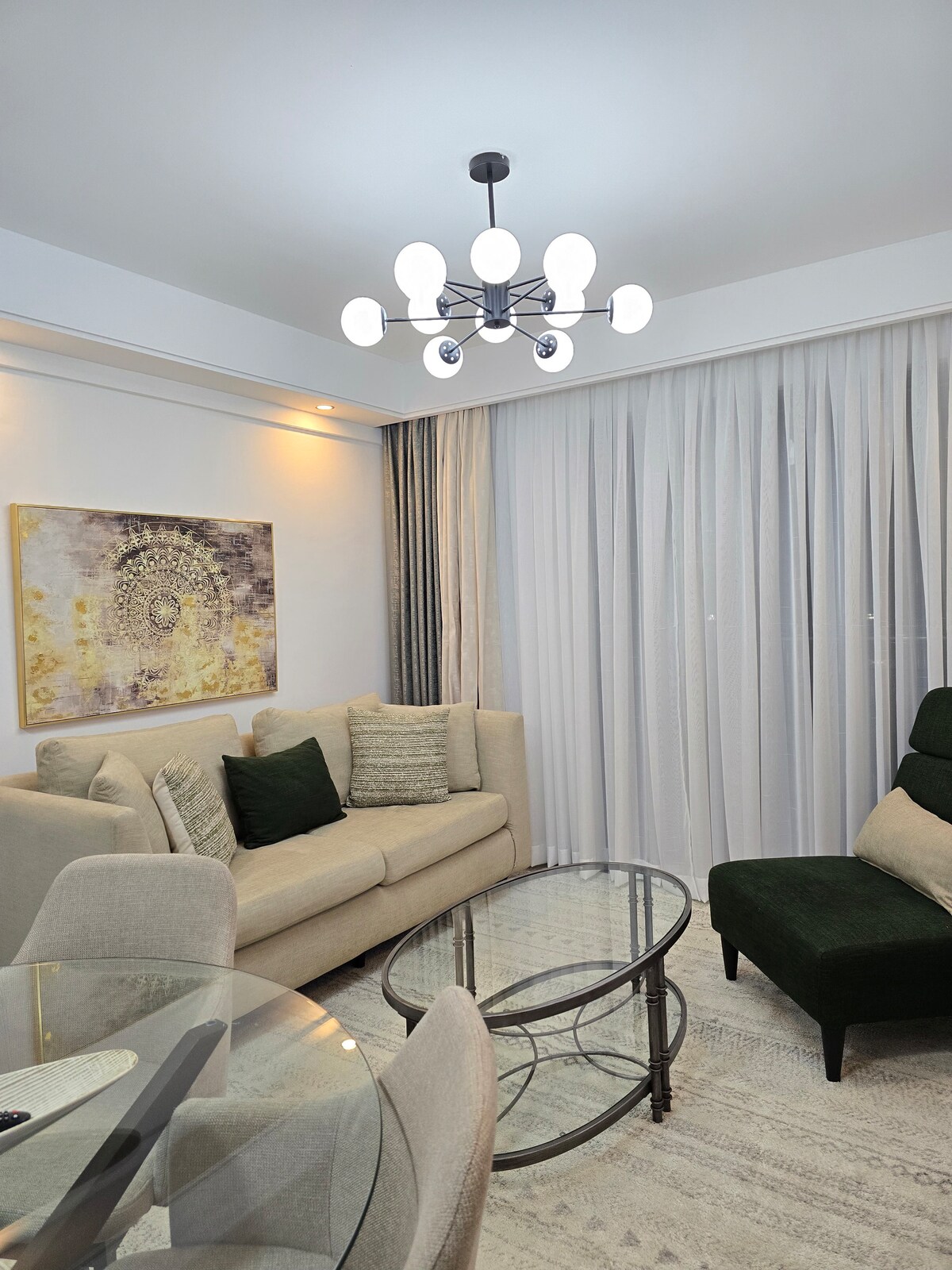 Wake up to sweeping Nairobi skyline views in this elegant 2BR apartment set in secure, tranquil Lavington. Ideal for business travelers, families, couples, and long-stay guests seeking comfort and convenience. Just a 3-minute walk to a 24-hour food market and a mall, and in close proximity to influential areas within Nairobi for easy access to business, dining, and entertainment.