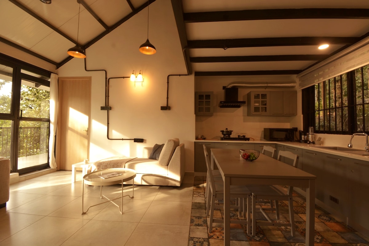 Escape to our serene retreat featuring 5 tastefully designed rooms, each with its own private sit-out. Gather with family & friends in our cozy lounge, perfect for conversations, games, or simply unwinding. Near major sights, yet quietly nestled in nature for a relaxing, stress-free stay. Enjoy seamless WiFi & 24/7 power backup. Entire property is given to one group at a time; rooms provided based on 2 guests per room. Make your evenings special with BBQ and bonfire experiences (extra charge).