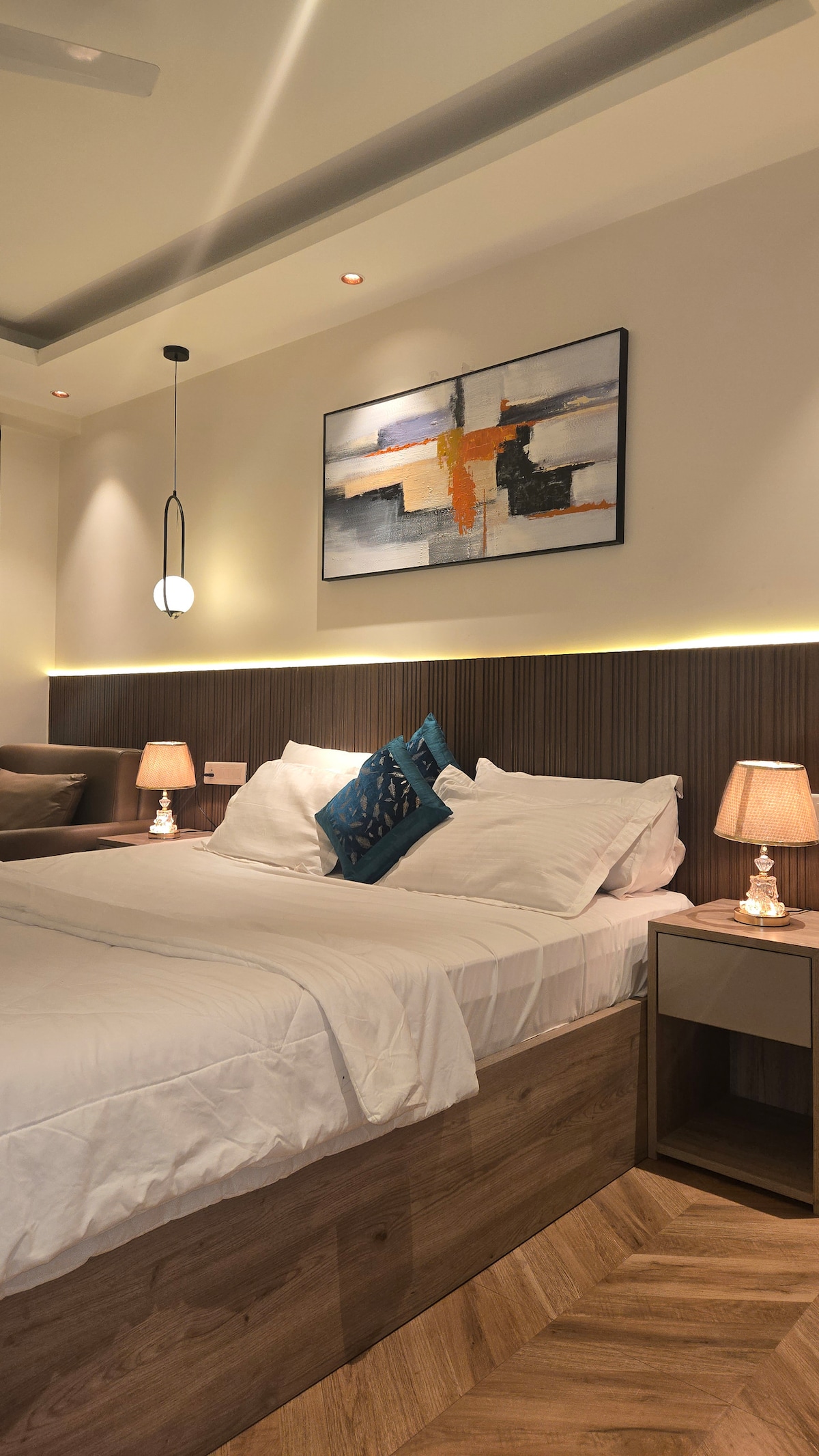 Welcome to Trovero Suites Nestled in the heart of Greater Noida, Near Expo Mart (8 km) ✨ What You’ll Love: ✔ Private Balcony – Enjoy the Mesmerizing scenic view ✔ Prime Location – Close to top attractions, restaurants ✔ Modern Comfort – A beautifully furnished space with a comfy bed, cozy seating, and stylish decor. ✔ Fully Equipped Kitchen – Cook your favorite meals with ease. ✔ Fast WiFi & Smart TV – Stay connected and entertained. ✔ Serene Ambiance – A peaceful Luxurious and private retreat