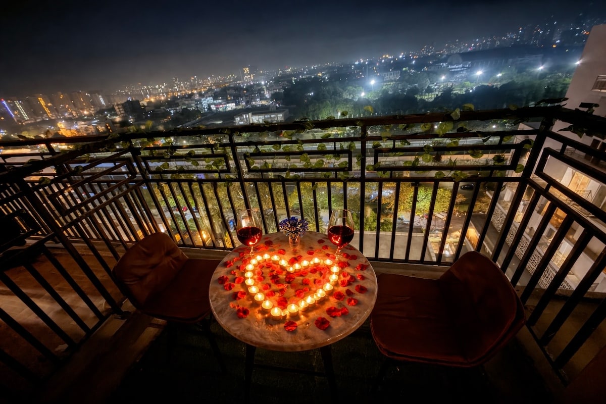 A modern city view apartment designed for comfort and convenience near India Expo Mart. Ideal for business travellers, Expo visitors, and couples seeking a private, clean, stylish and comfortable stay. Unwind with curated board games and puzzles, perfect for a relaxing indoor experience. Hygienic and clean Stays for patients on medical tourism. Located near Pari Chowk. Many cafés, restaurants, and daily essentials within walking distance.